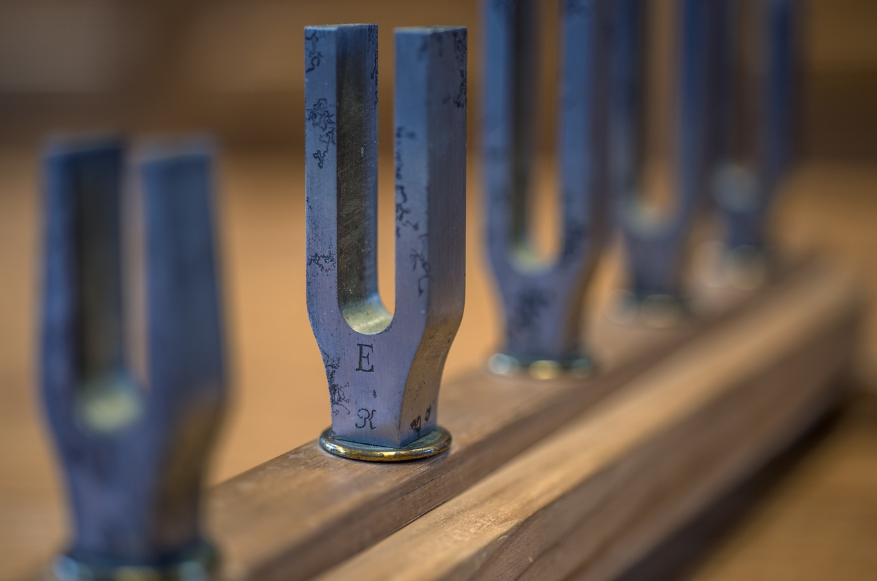 Sur chaque diapason sont gravées la lettre correspondante et les initiales de KoenigImmatriculation