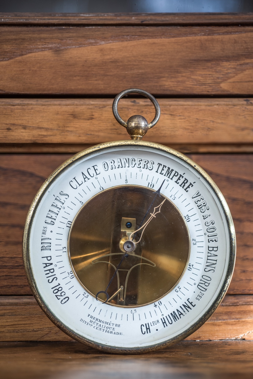 Thermomètre métallique à cadran - Chaleur (non signé)Immatriculation