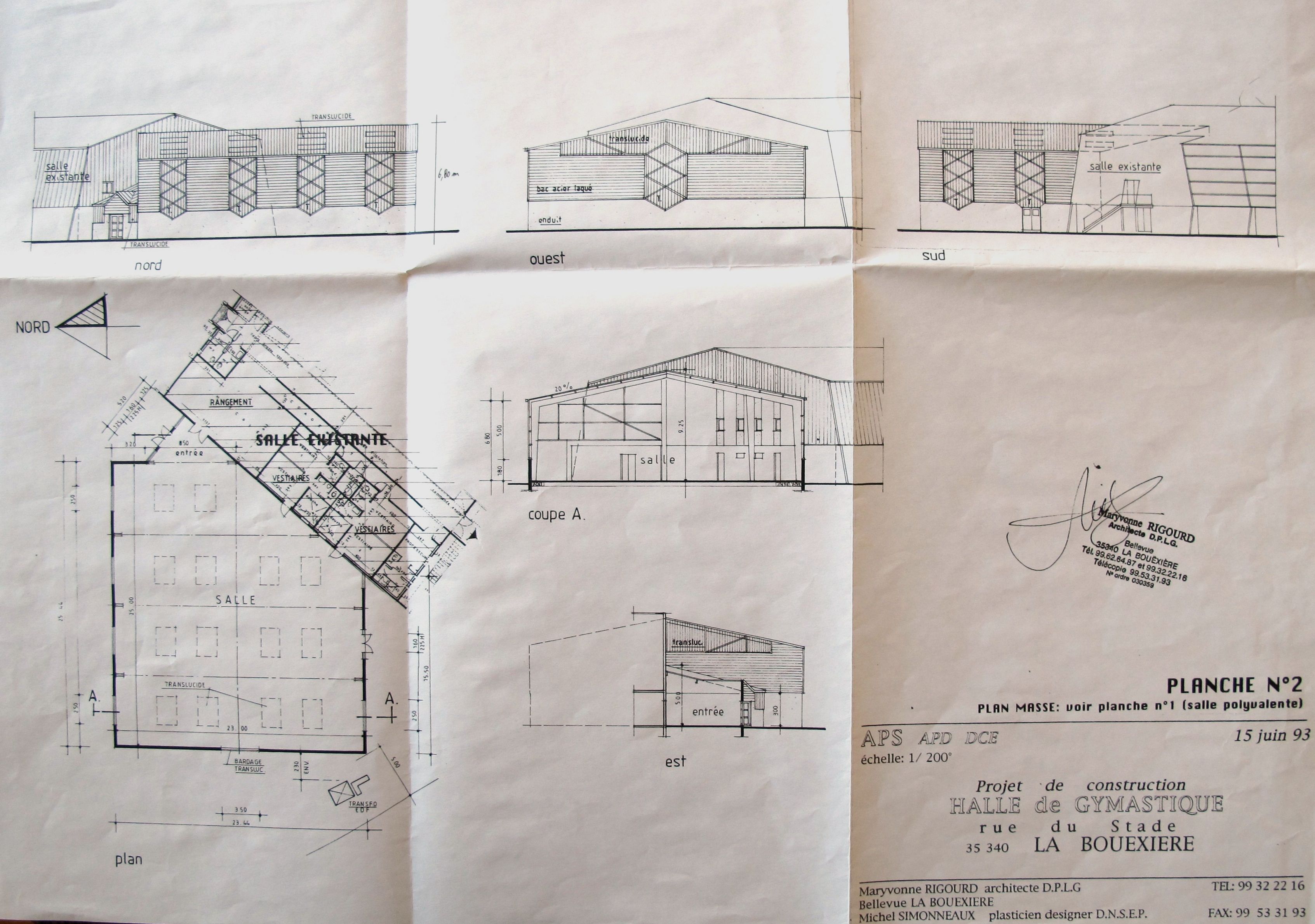 AC La Bouëxière : non coté. Plan, façades, coupe. M. Rigourd, 1993.