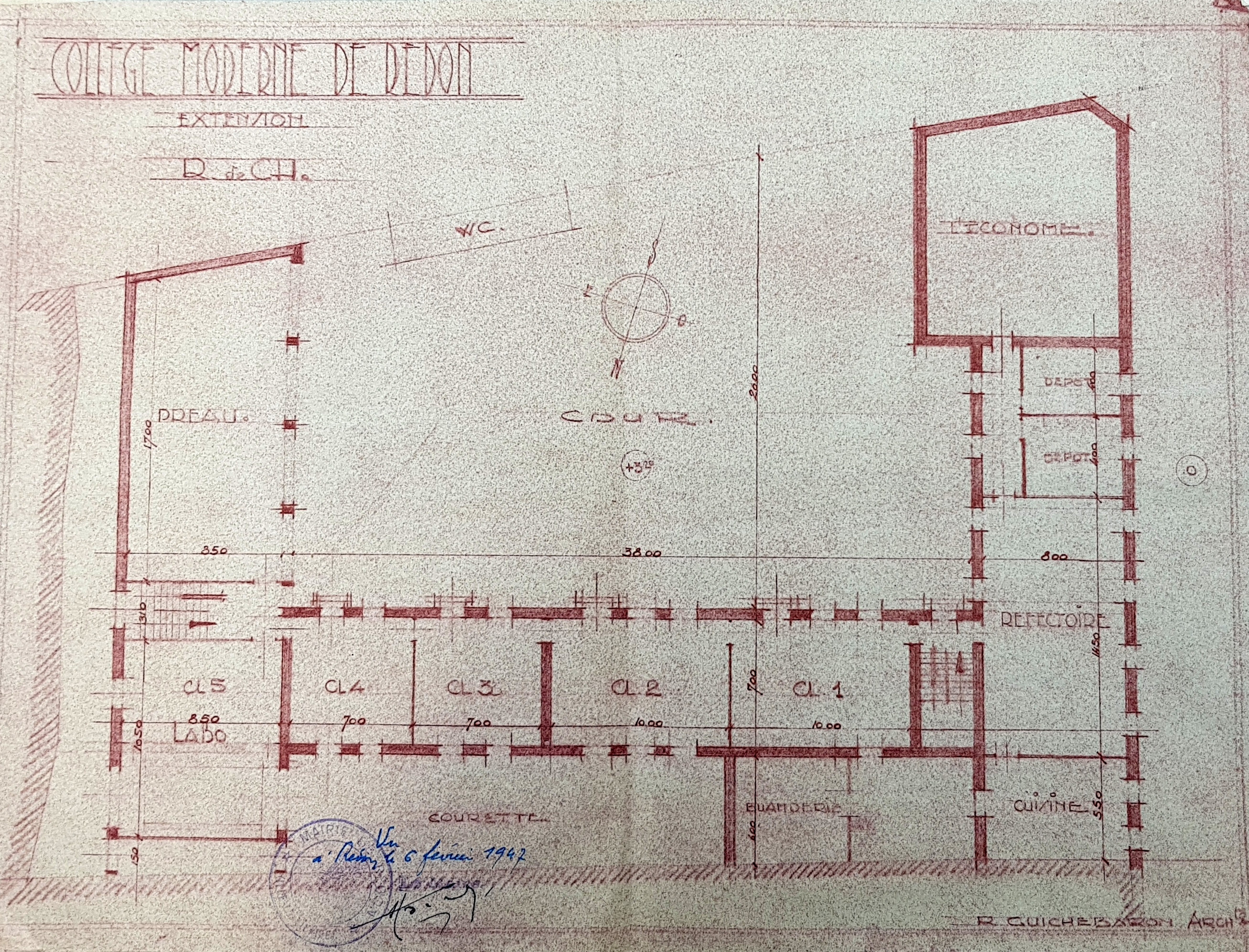 Collège Moderne. Extension. Rez-de-chaussée. R. Guichebaron, architecte, 1947.Immatriculation