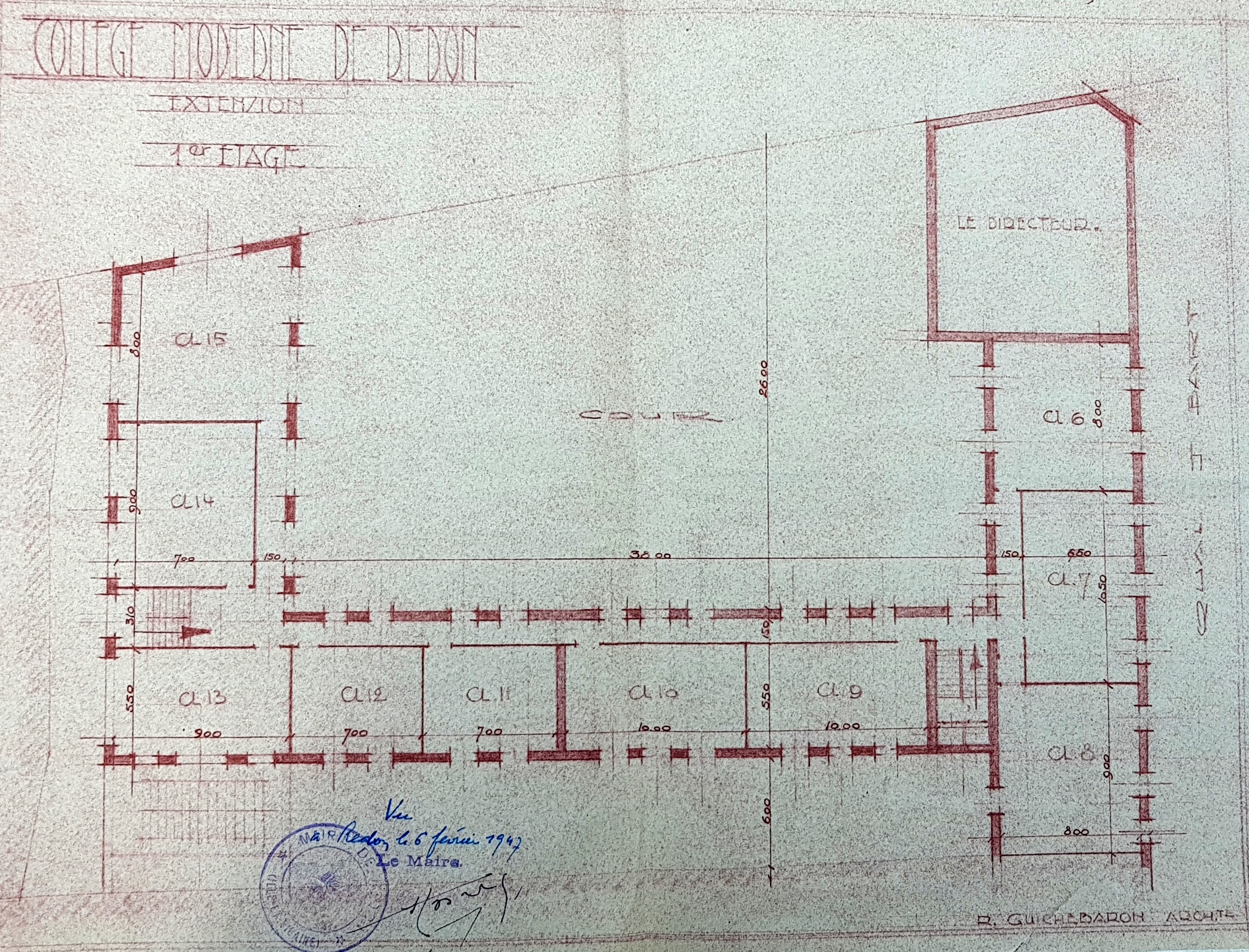 Collège moderne de Redon. Extension. 1er étage. R. Guichebaron, architecte, 1947Immatriculation