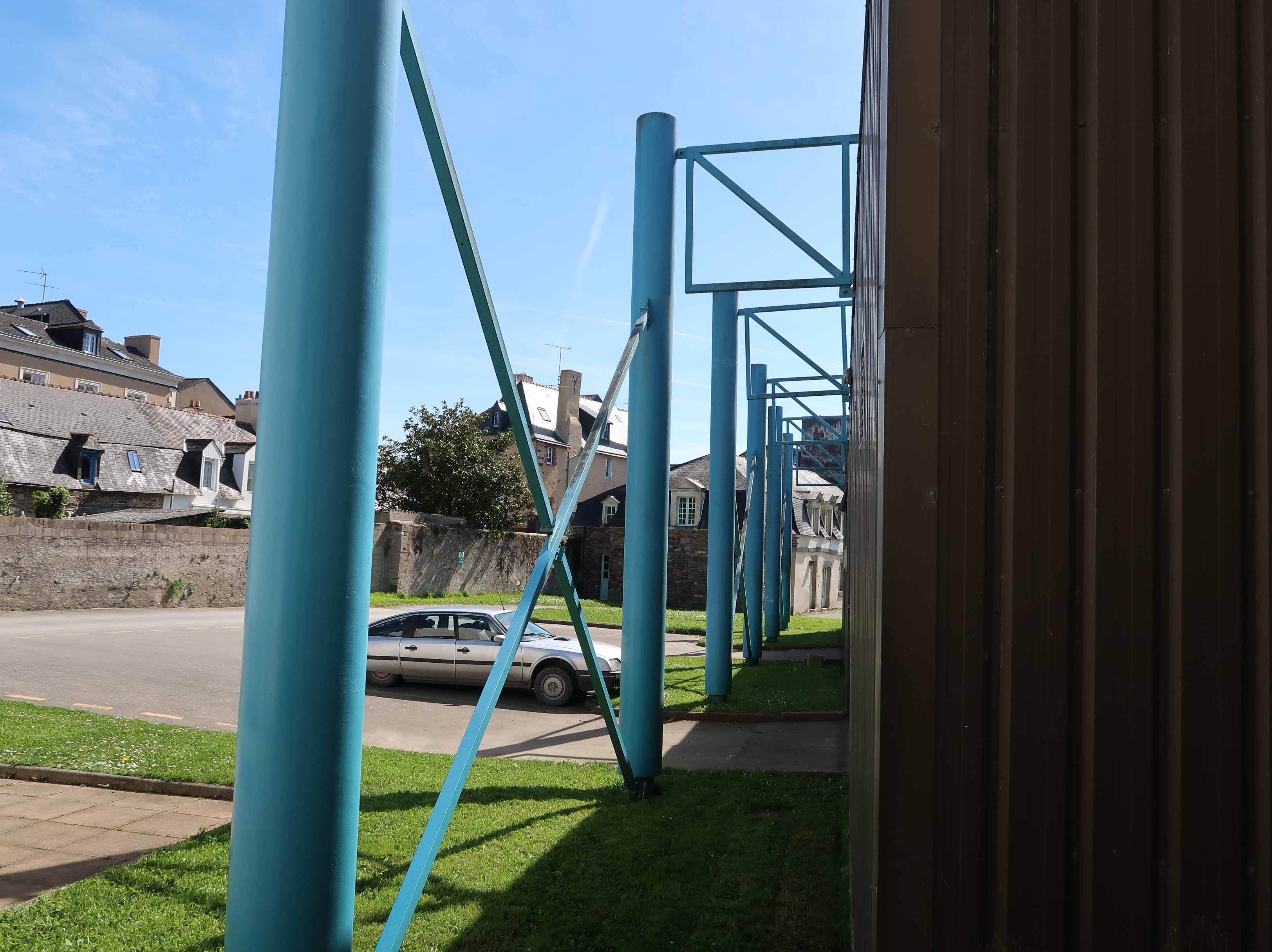 Structure métallique extérieure des ateliers carrosserie.Immatriculation