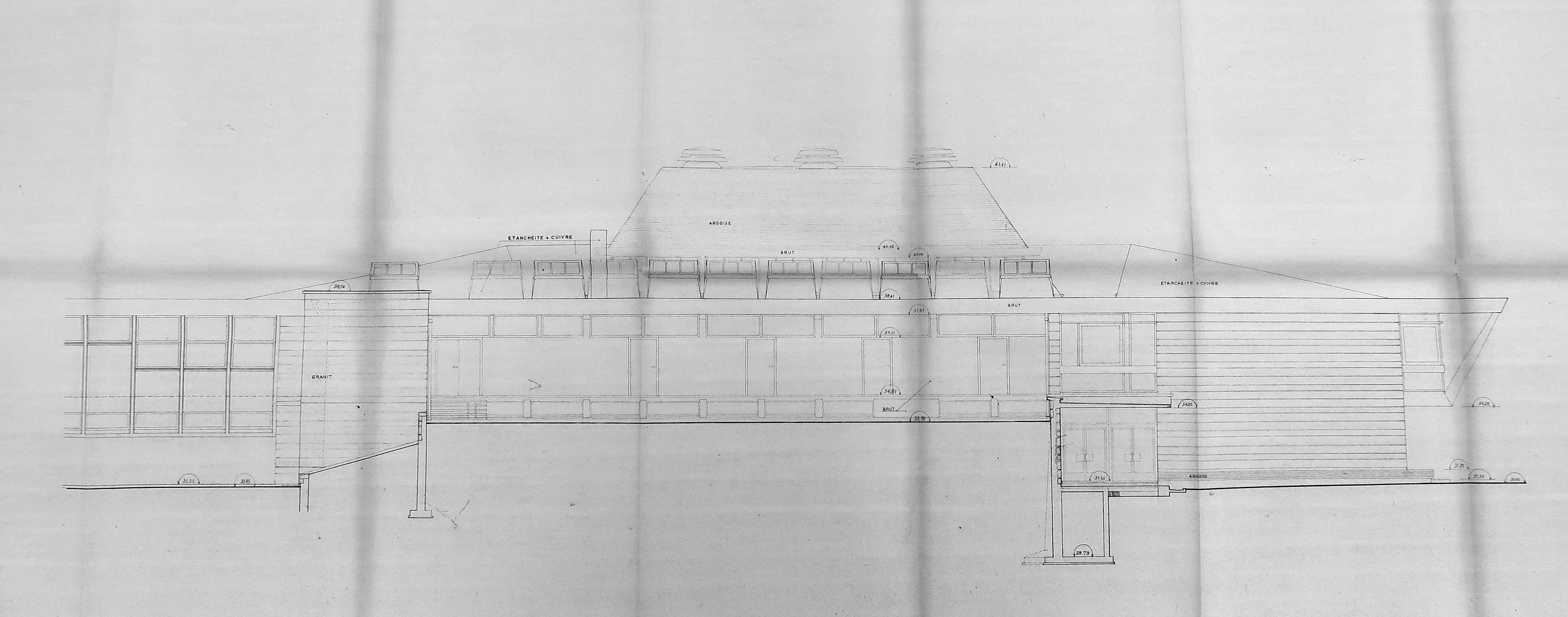 Réfectoire - cuisine, façade nord, Louis Arretche, architecte, 1961.Immatriculation