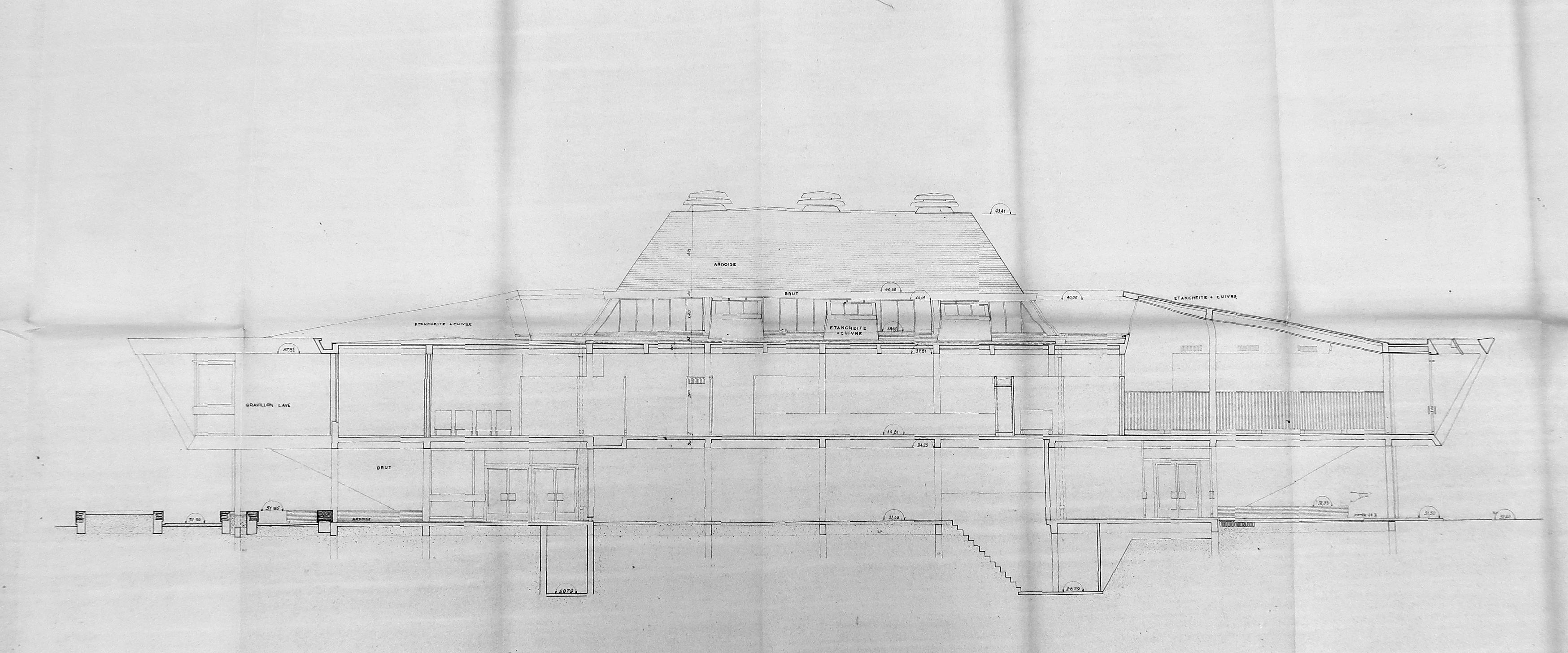 Réfectoire - cuisine, façade nord, coupe 13, Louis Arretche, architecte, 1961.Immatriculation