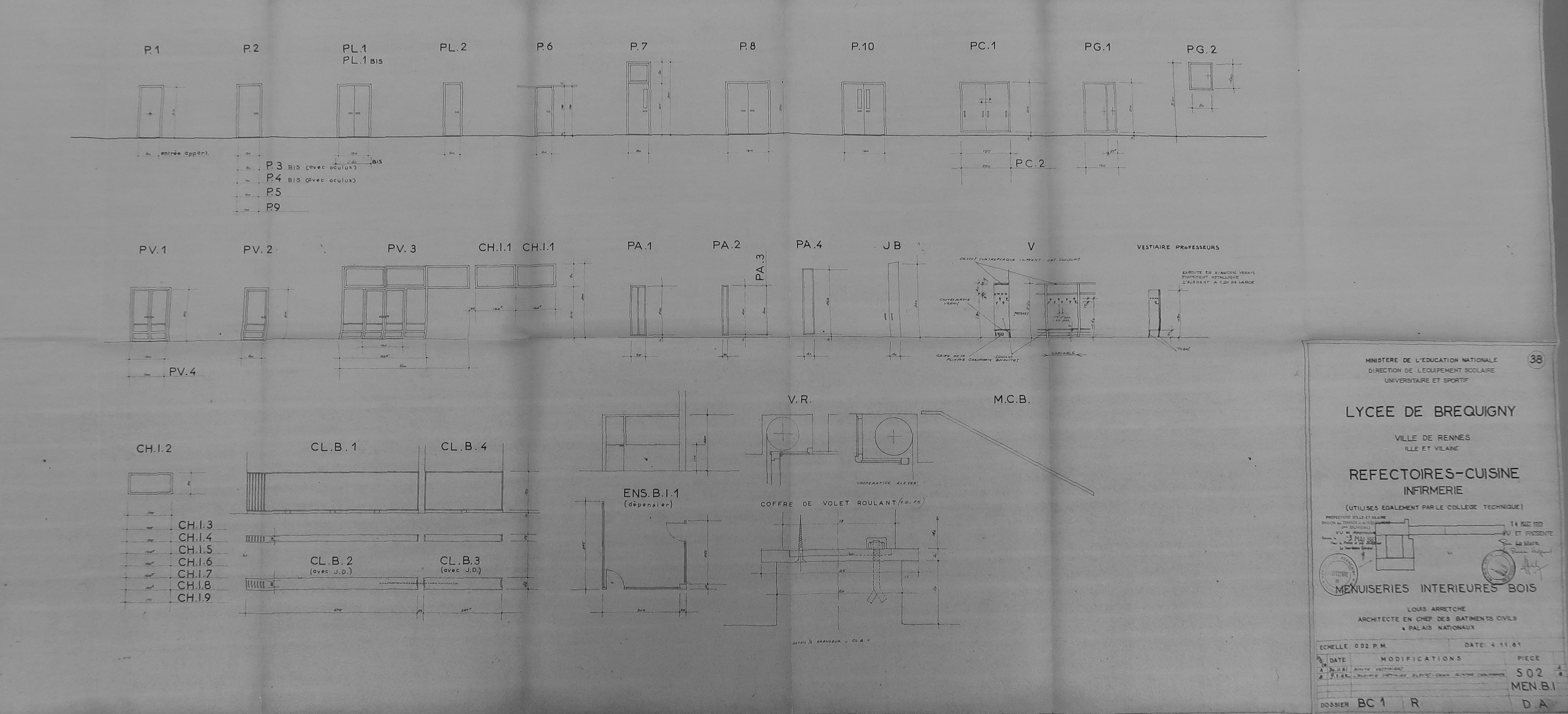 Menuiseries intérieures bois, réfectoire - cuisine - infirmerie, Louis Arretche, architecte, 1961.Immatriculation