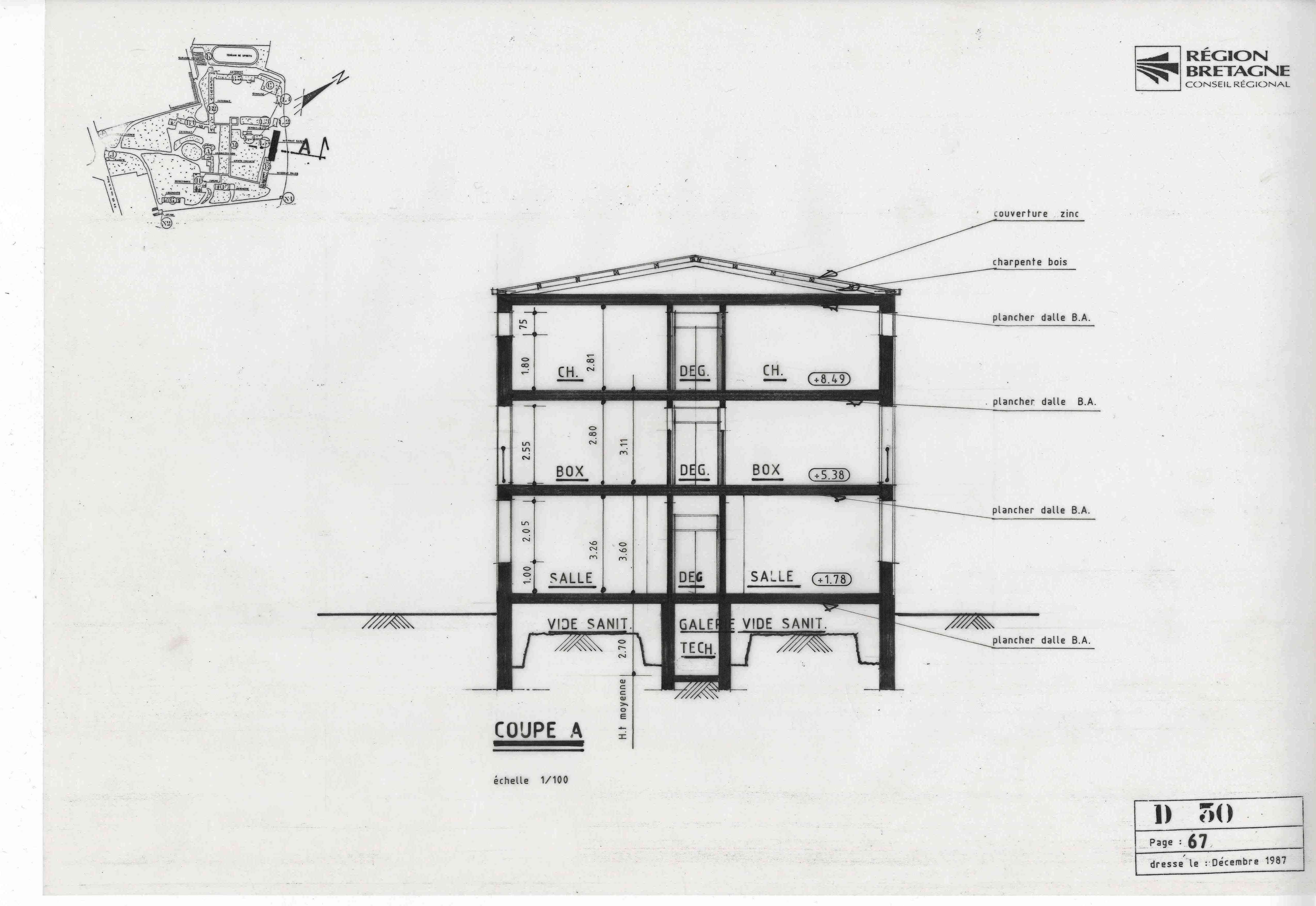 Archives de la direction de l'immobilier et de la logistique du Conseil régional de Bretagne : non coté. Lycée Jacques Cartier. État actuel. Jacques Salmon, décembre 1987.