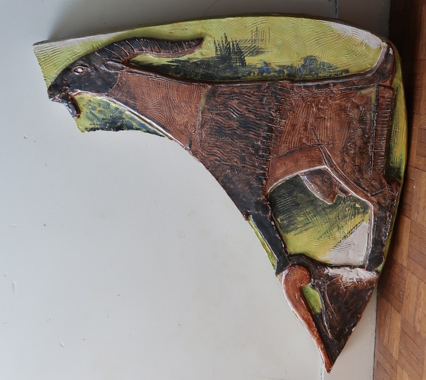 Antoniucci Volti (1915-1989). Bas- relief en céramique polychrome. Thème : les fables de La Fontaine, 1957-1958.Immatriculation