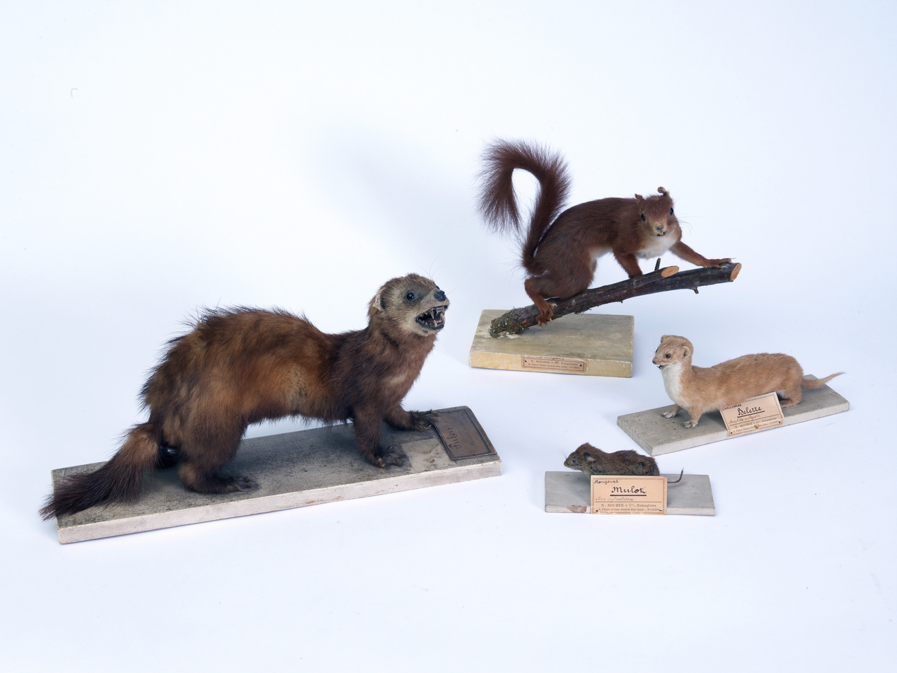 Putois, écureuil, belette et mulot - Zoologie – Embranchement des vertébrés (Maison Deyrolle et Comptoir central d'histoire naturelle N. Boubée et Cie.)- ;