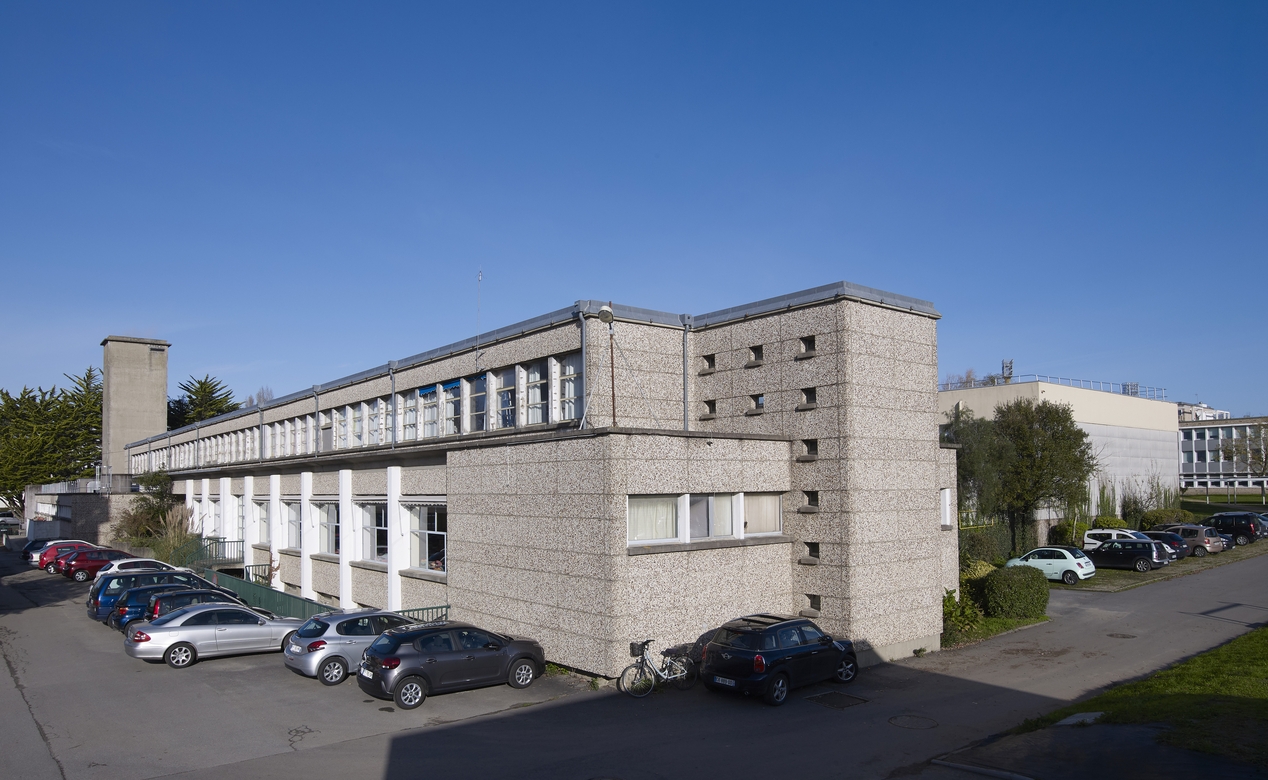 Service de restauration et chaufferie (R. Ouvré et G. Tourry architectes), vue d'ensemble prise du sud-ouest.Immatriculation
