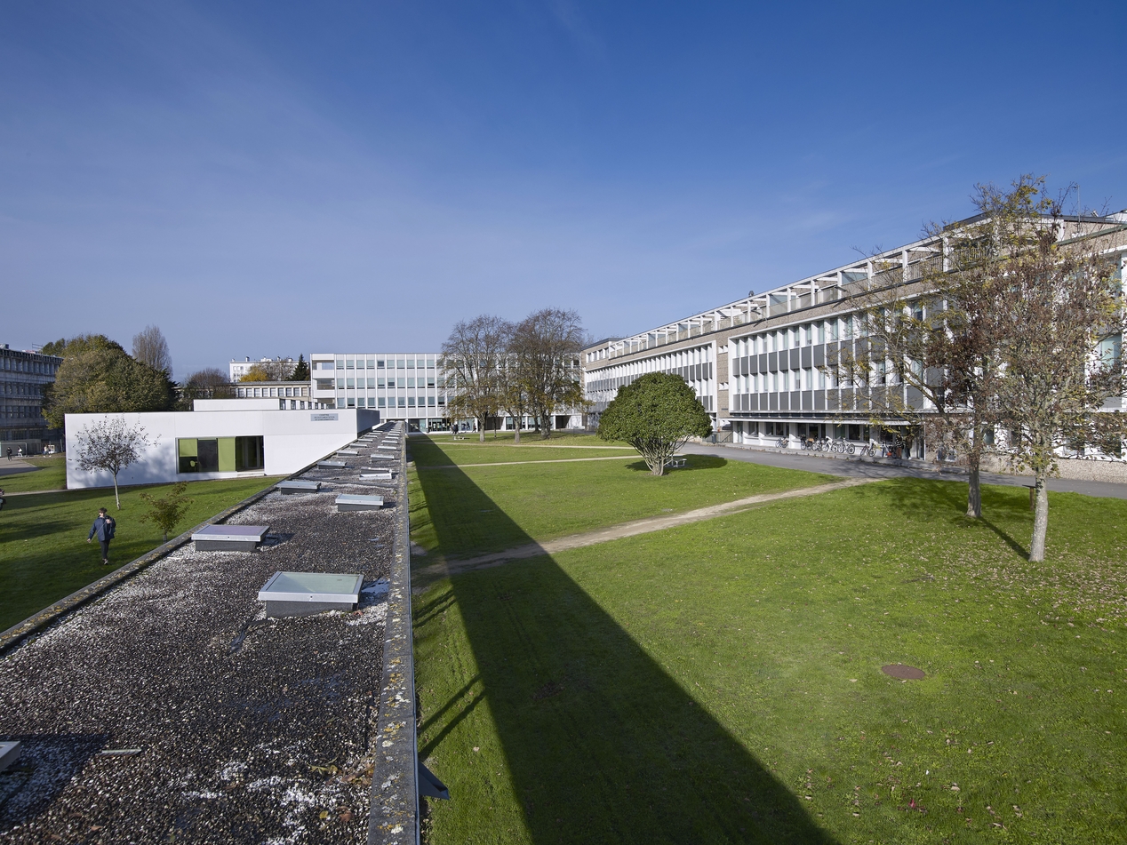 De gauche à droite, nouveau CDI, externat P3, bâtiment scientifique. Au premier plan, toit de la galerie de circulation créée lors de la restructuration post-2005.Immatriculation