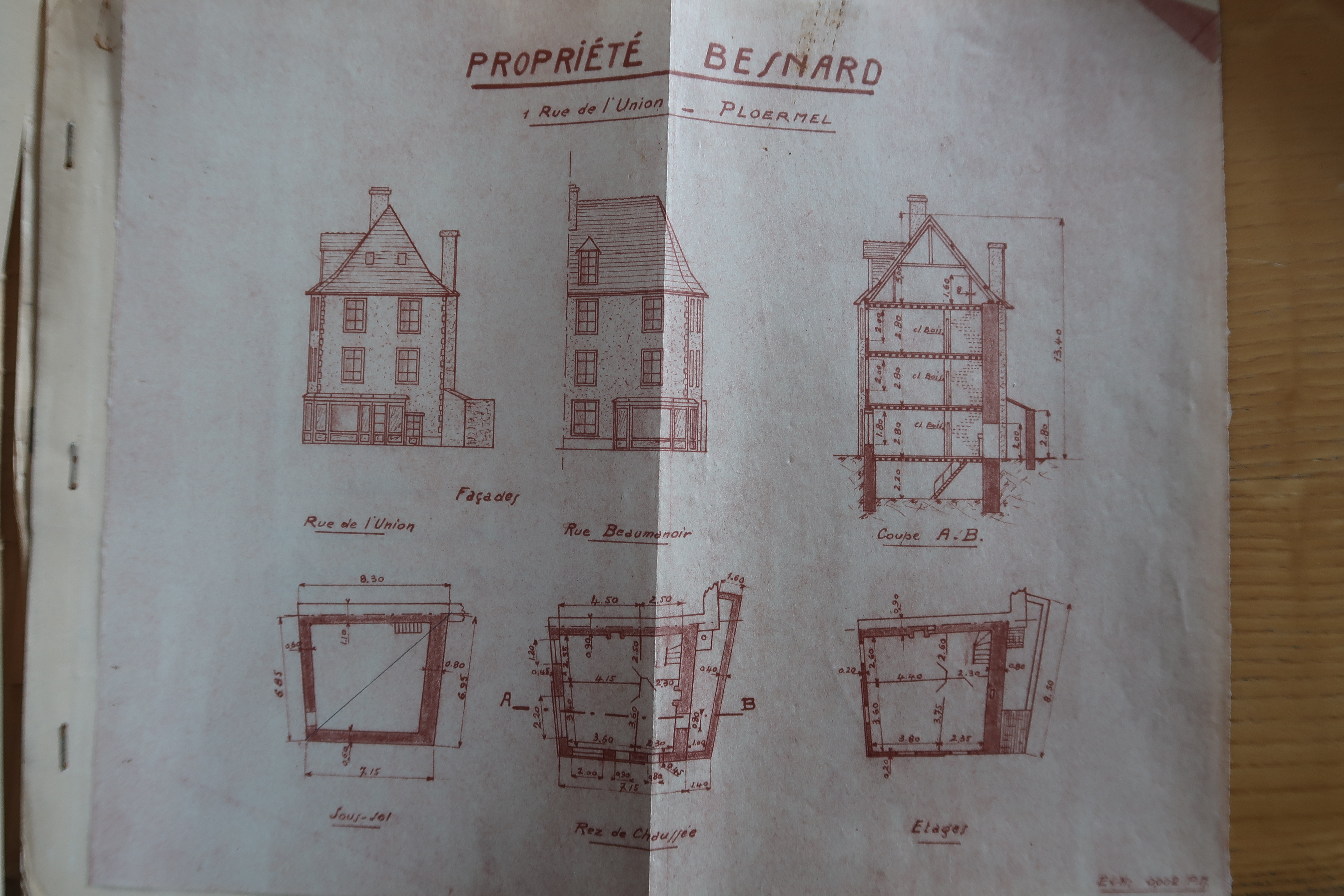 Plans de la maison à l'angle de la rue Beaumanoir / rue du 12 juin 1944 antérieurement à sa destructionImmatriculation