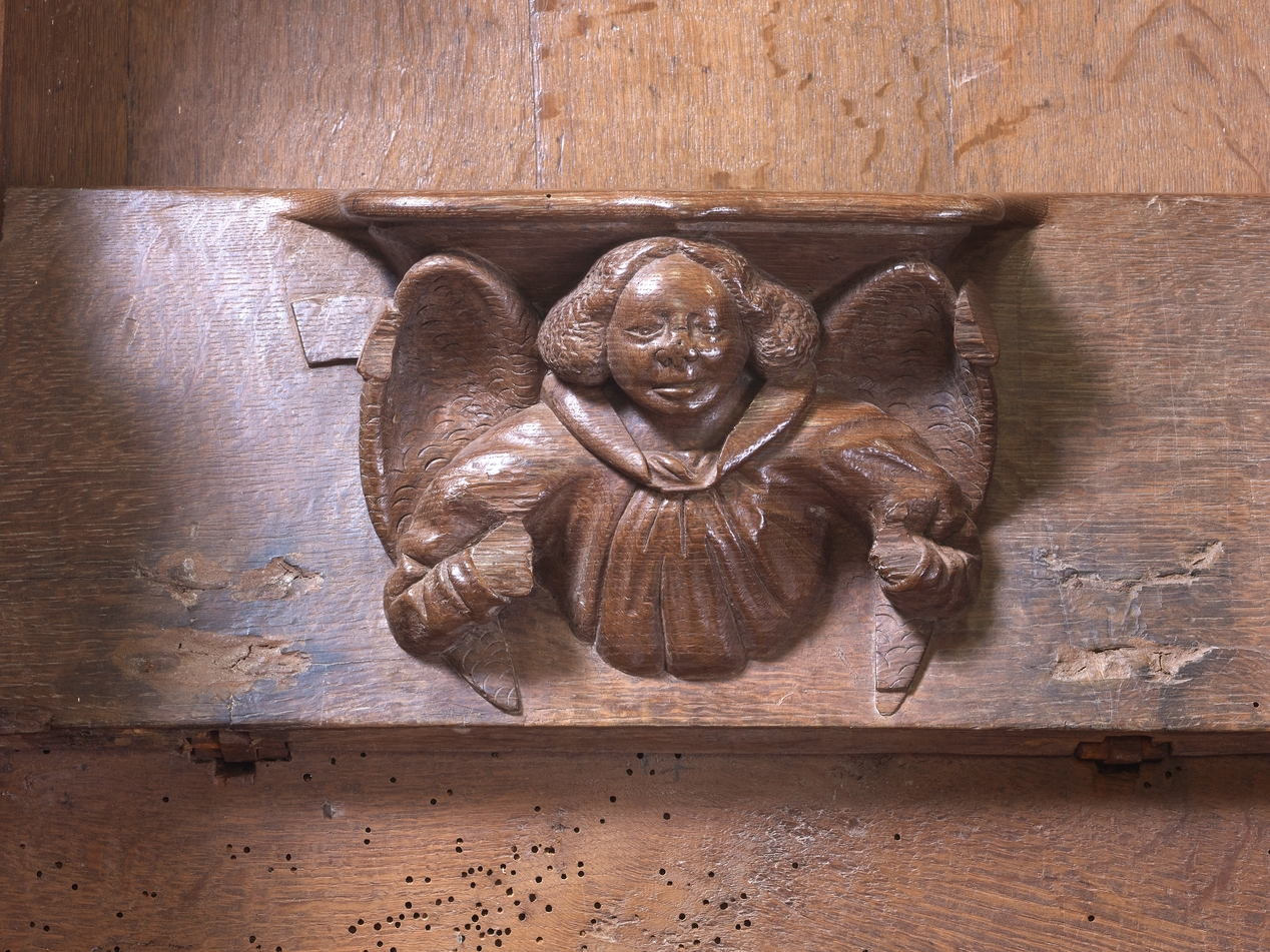 Détail de l'une des stalles : un angeImmatriculation