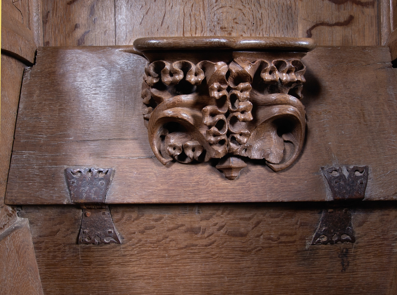 Détail de l'une des stalles : ornement végétalImmatriculation