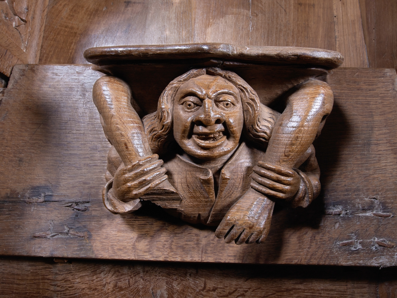 Détail de l'une des stalles : un acrobate contorsionnisteImmatriculation