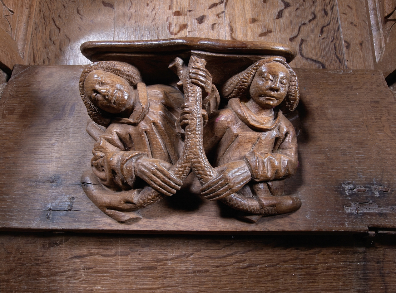 Détail de l'une des stalles : deux anges à la brancheImmatriculation