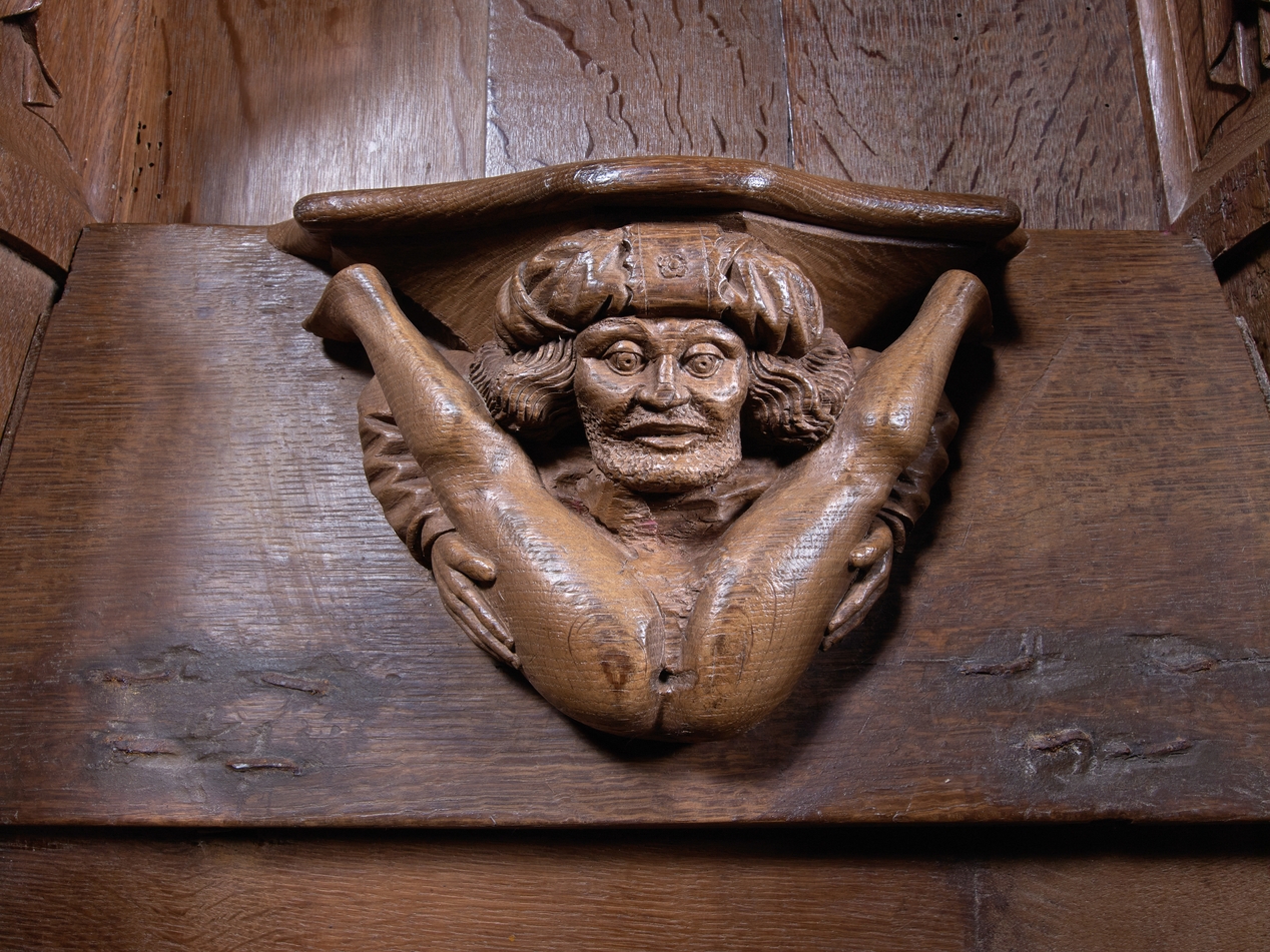 Détail de l'une des stalles : un accrobate exhibitionnisteImmatriculation