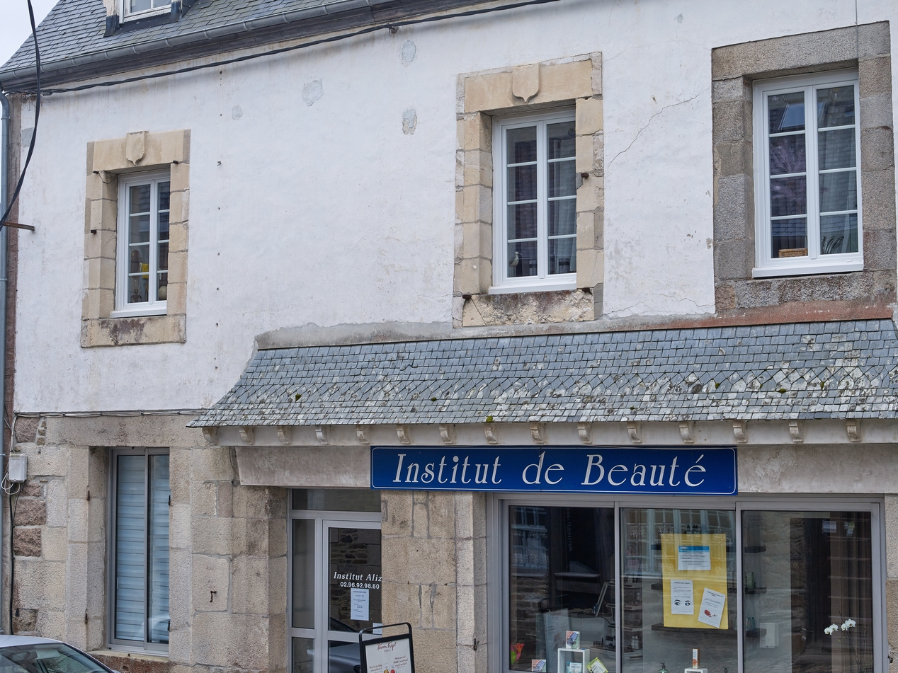 42 rue Renan. Maison du 17e siècle. Détail des baies du premier étage ornées de blasons muets autrefois peintsImmatriculation