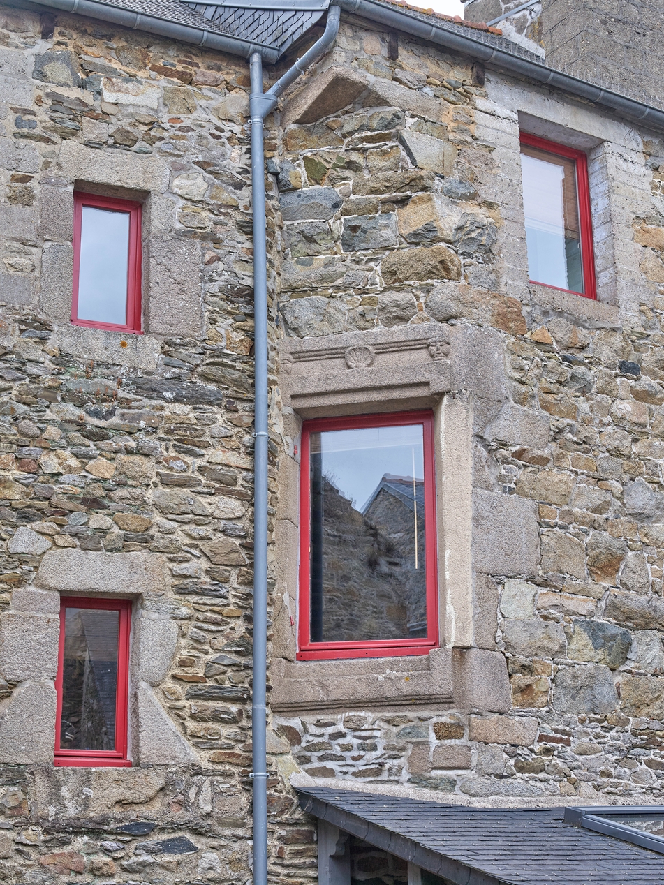 10 rue Saint-Yves. Maison 17e siècle remaniée aux 19e et 20e siècles. Côté cour, détail de la fenêtre d'angle de la tour d'escalierImmatriculation