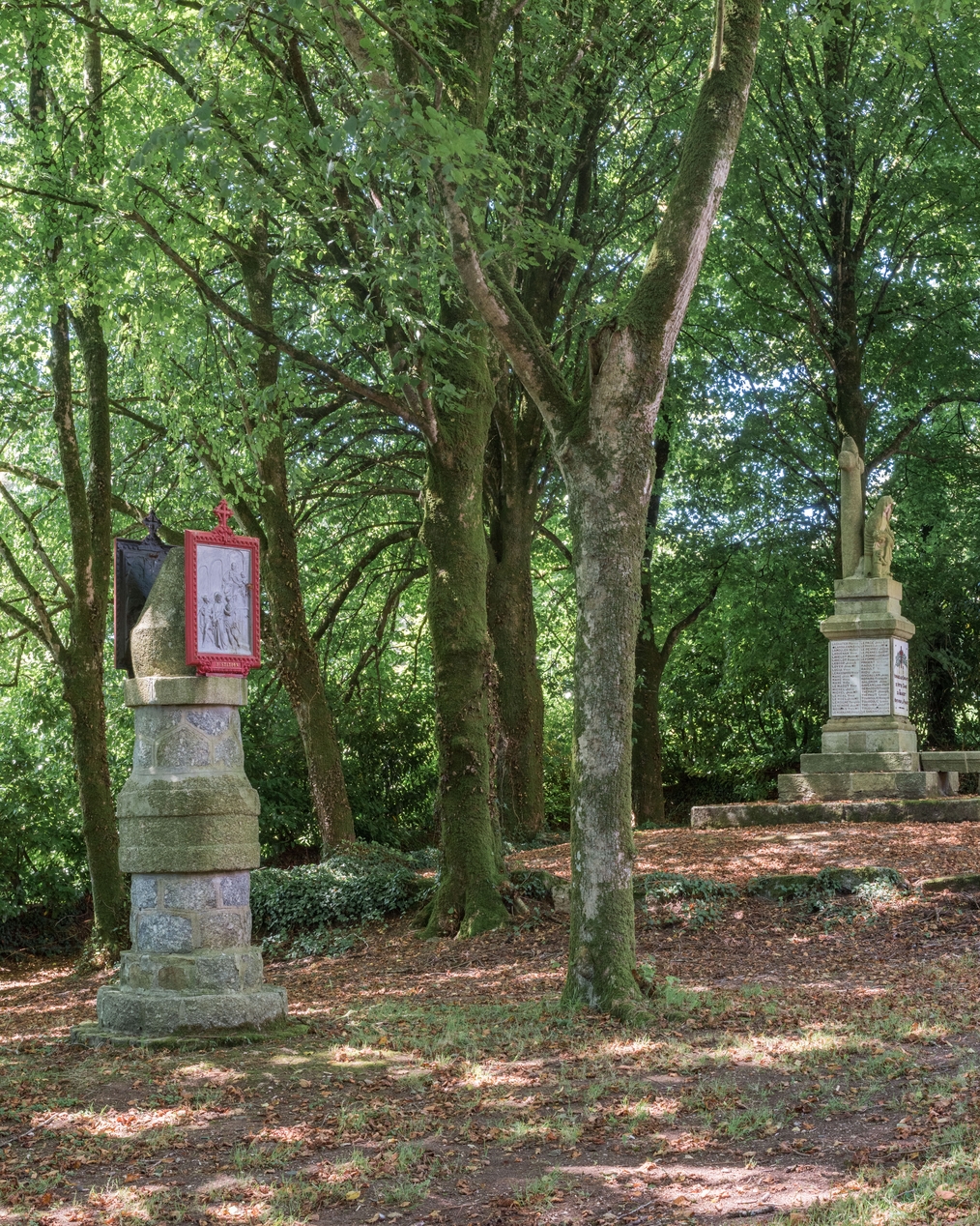 Vue du monument aux morts et d'un pilier de chemin de croixImmatriculation