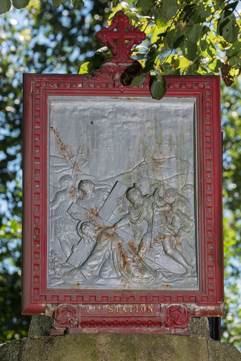 Vue générale de la station VII du chemin de croix : Jésus tombe pour la deuxième foisImmatriculation