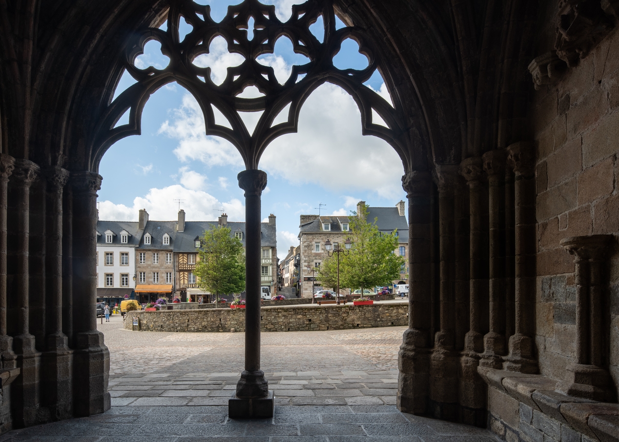 Porche sud dit porche du Peuple. En arrière-plan, la place du Martray et la rue Saint-YvesImmatriculation