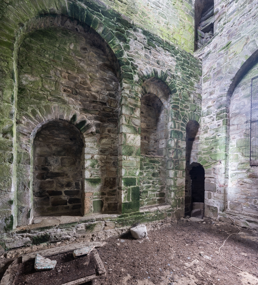Troisième niveau de la tour Hasting (autrefois planchéié - niveau actuel sur l'extrados de la voûte), élévation nord et angle nord-est (passage voûté donnant sur l'escalier)Immatriculation