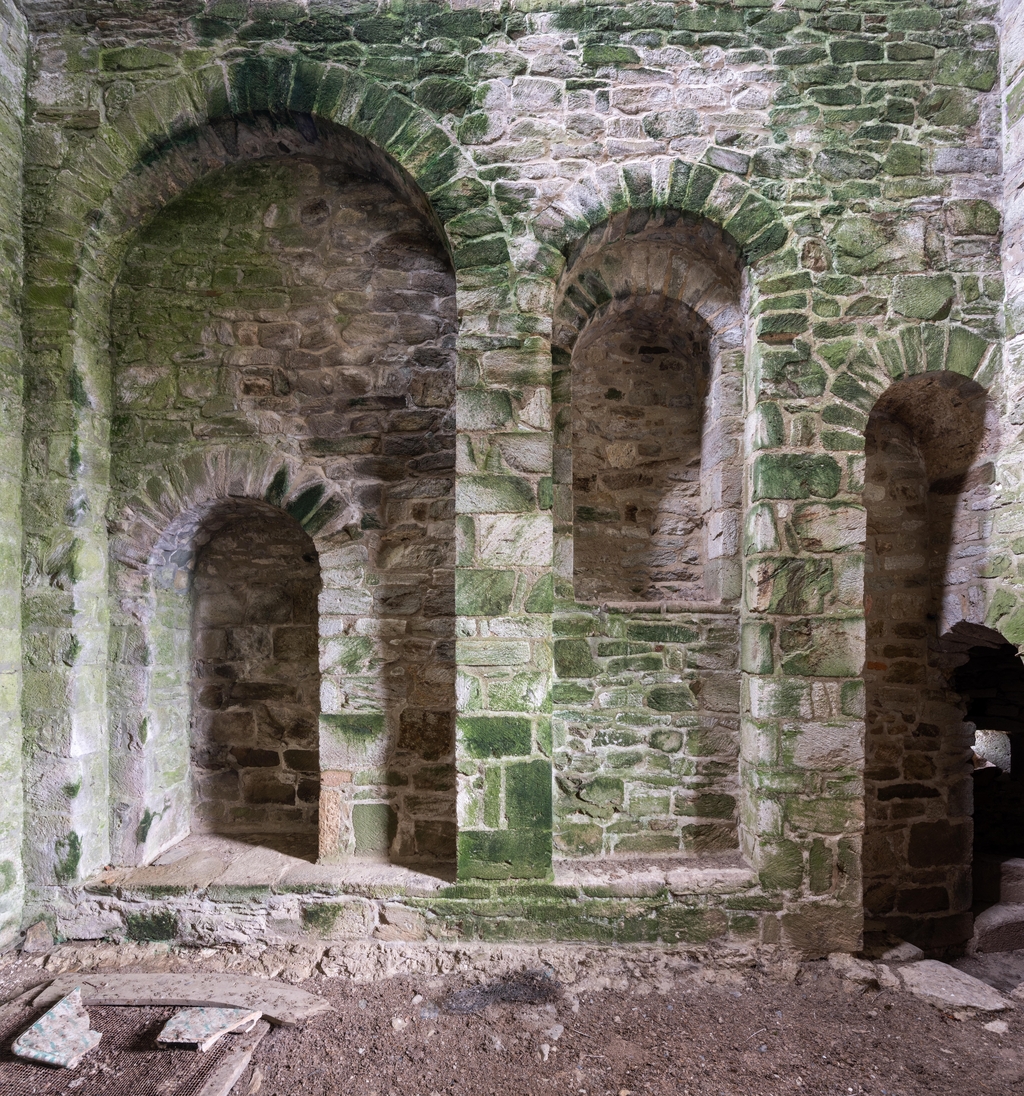 Troisième niveau de la tour Hasting (autrefois planchéié - niveau actuel sur l'extrados de la voûte), élévation nord (à droite, passage voûté donnant sur l'escalier)Immatriculation