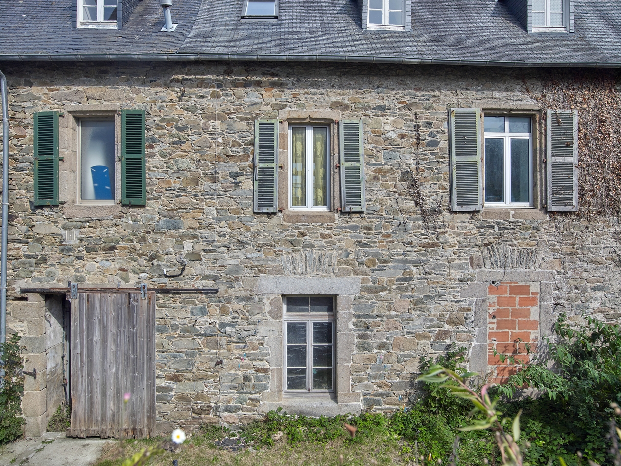 Tréguier, 9 rue des Perdreries (Perderies) : maison dite "Scolasticat", logis principal, détail de l'élévation ouest, état en 2020. A l'étage, au centre, fenêtre à linteau en accoladeImmatriculation