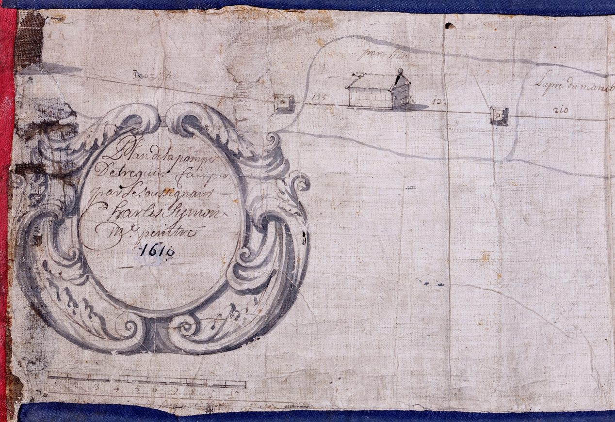Plan de la pompe de Tréguier faite par le soussignant Charles Symon, maître peintre, 1610 [1610, 1606 ou 1616 : ?].