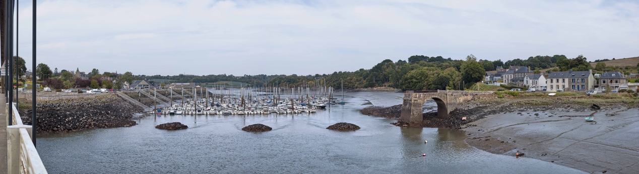 Tréguier : le port de plaisance implanté sur le Jaudy. L'ancienne travée du pont Canada se prolonge vers l'ouest par les vestiges des piles visibles à marée basseImmatriculation