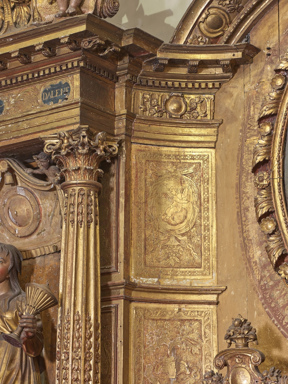Retable. Détail du travail des fonds à la dorureImmatriculation