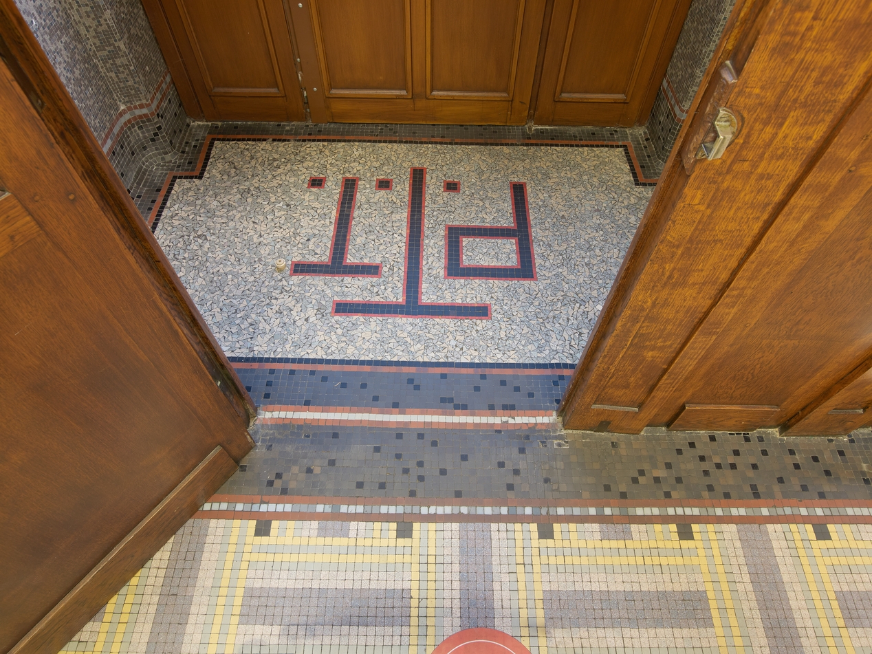 Sas d'entrée. Détail du tapis en mosaïquesImmatriculation