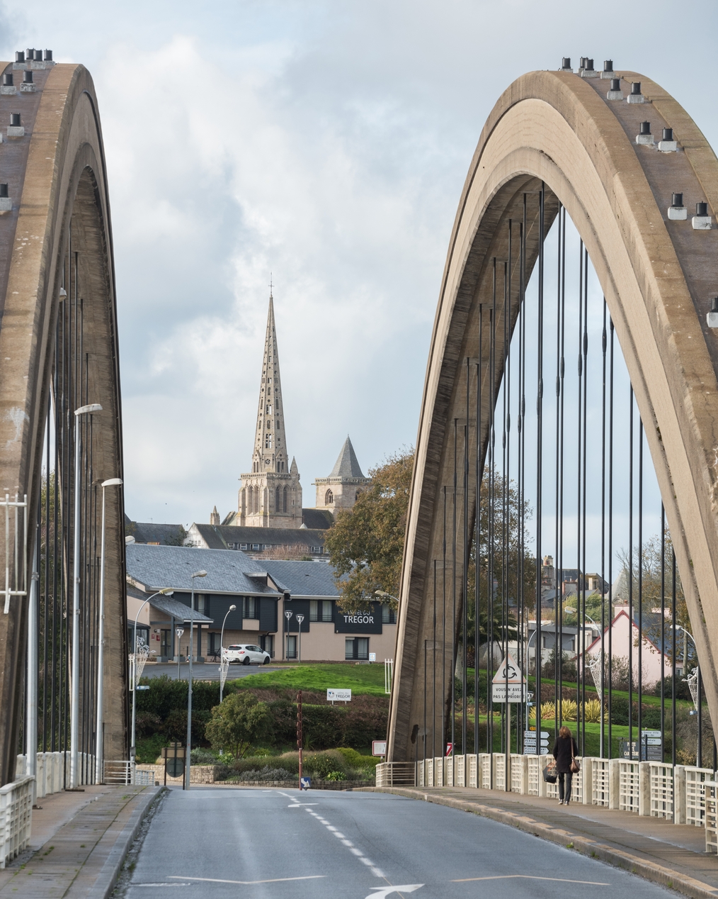 Tréguier : vue de la cathédrale Saint-Tugdual depuis le pont CanadaImmatriculation