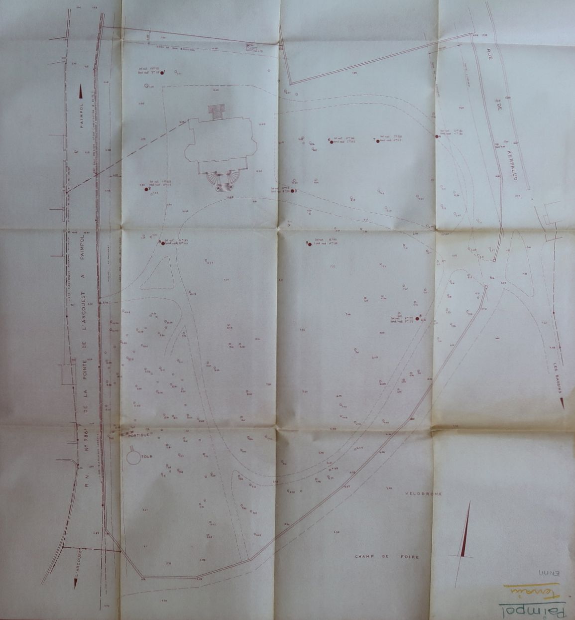 Plan du terrain avant construction et démolition du château. La tour, au sud-ouest, existe encore. (SD, ca. 1959).Immatriculation