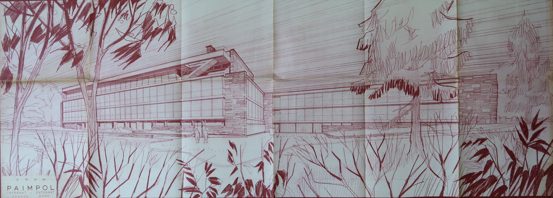 Internat - externat, façade nord. R. Rolland et A. Weinstein, architectes, mai 1959.Immatriculation