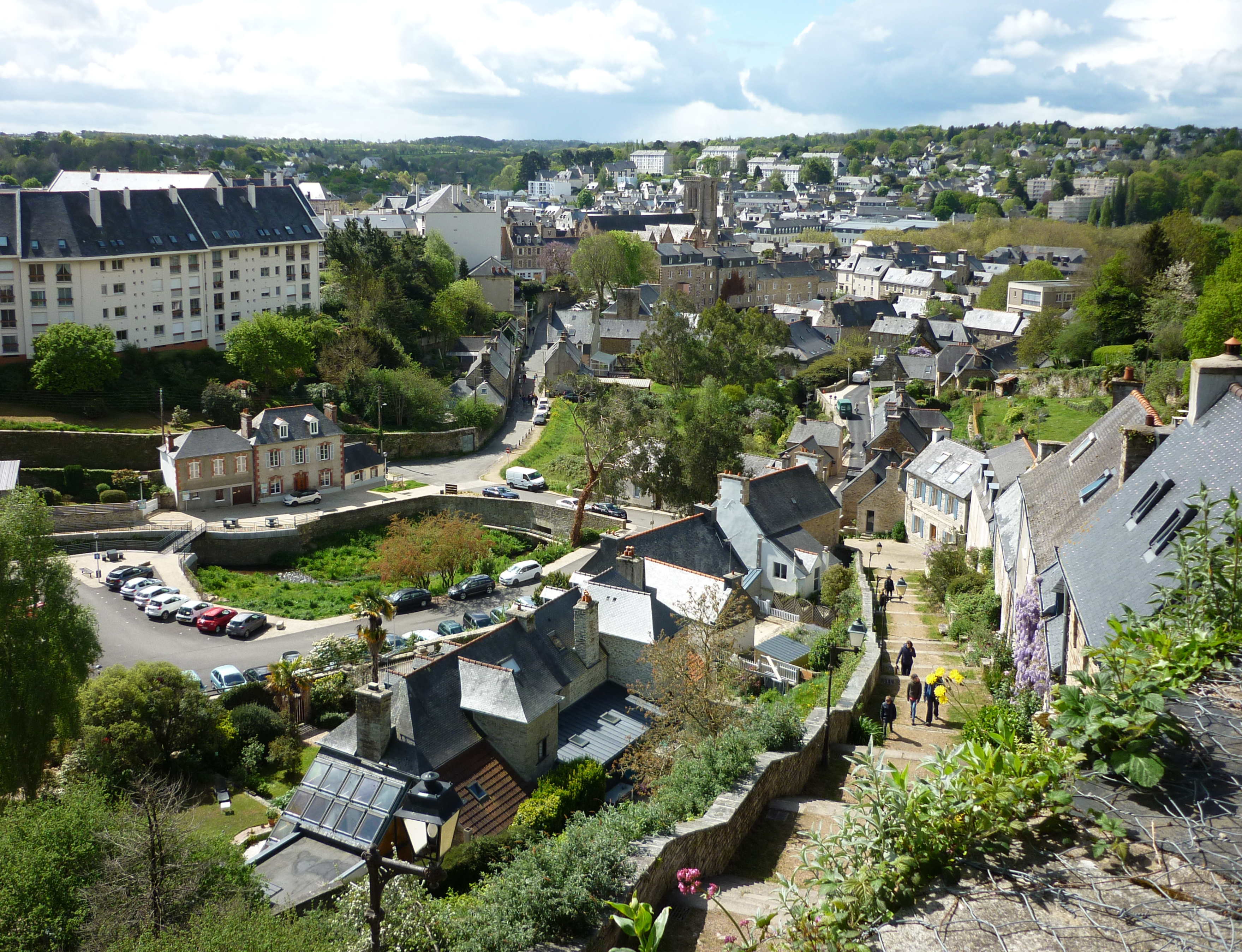 Lannion : vue sur le centre-ville, l'église Saint-Jean-du-Baly et le quartier du Stanco depuis le parvis de l'église de BrélévenezImmatriculation