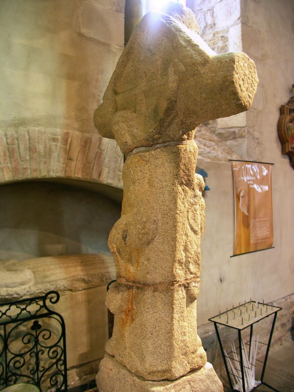 Statue : Vierge à l'Enfant en croix de calvaire dite Notre-dame de Nazareth, église Notre-Dame-de-Nazareth (Plancoët),