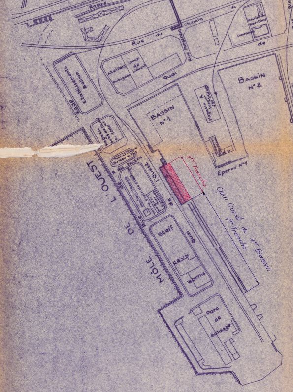Plan du port de commerce, vers 1956 : indications des phases de travaux (extrait)Immatriculation