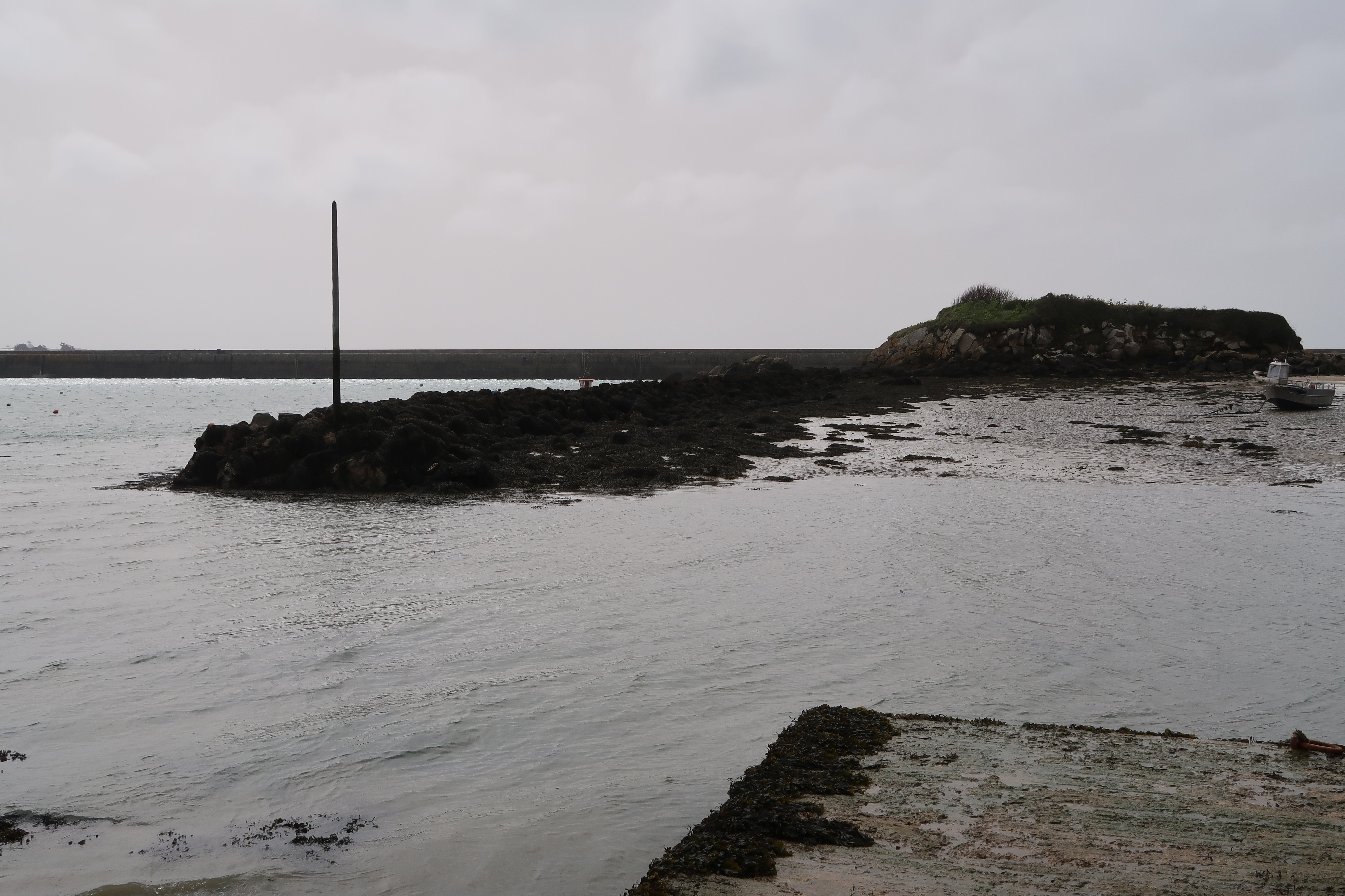 Jetée ouest de pors an eog : blocs de roches (mise en oeuvre en pierres-sèches) protégeant l'anseImmatriculation