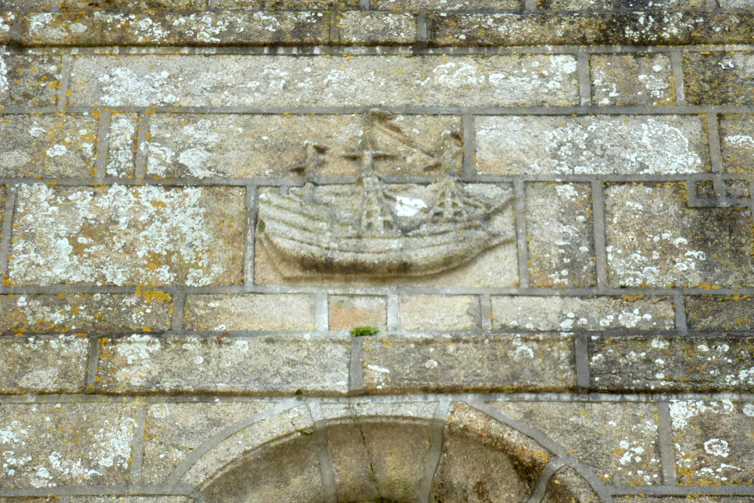 Élévation ouest, détail du 1er "vaisseau de pierre" au-dessus de la porte. (2020)Immatriculation