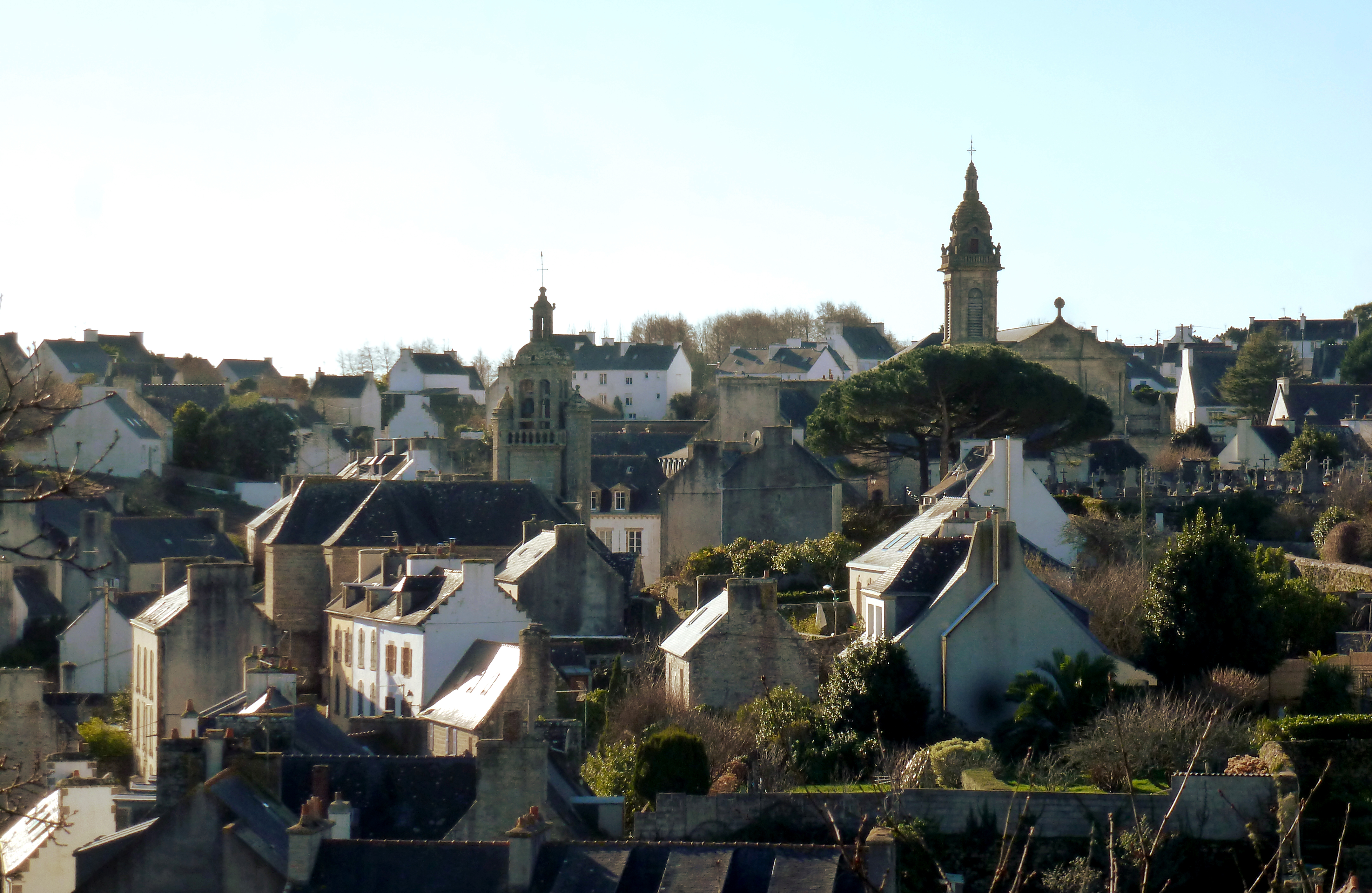 Ville d'Audierne, vue des clochers des églises Saint-Raymond et Saint-Joseph.Immatriculation