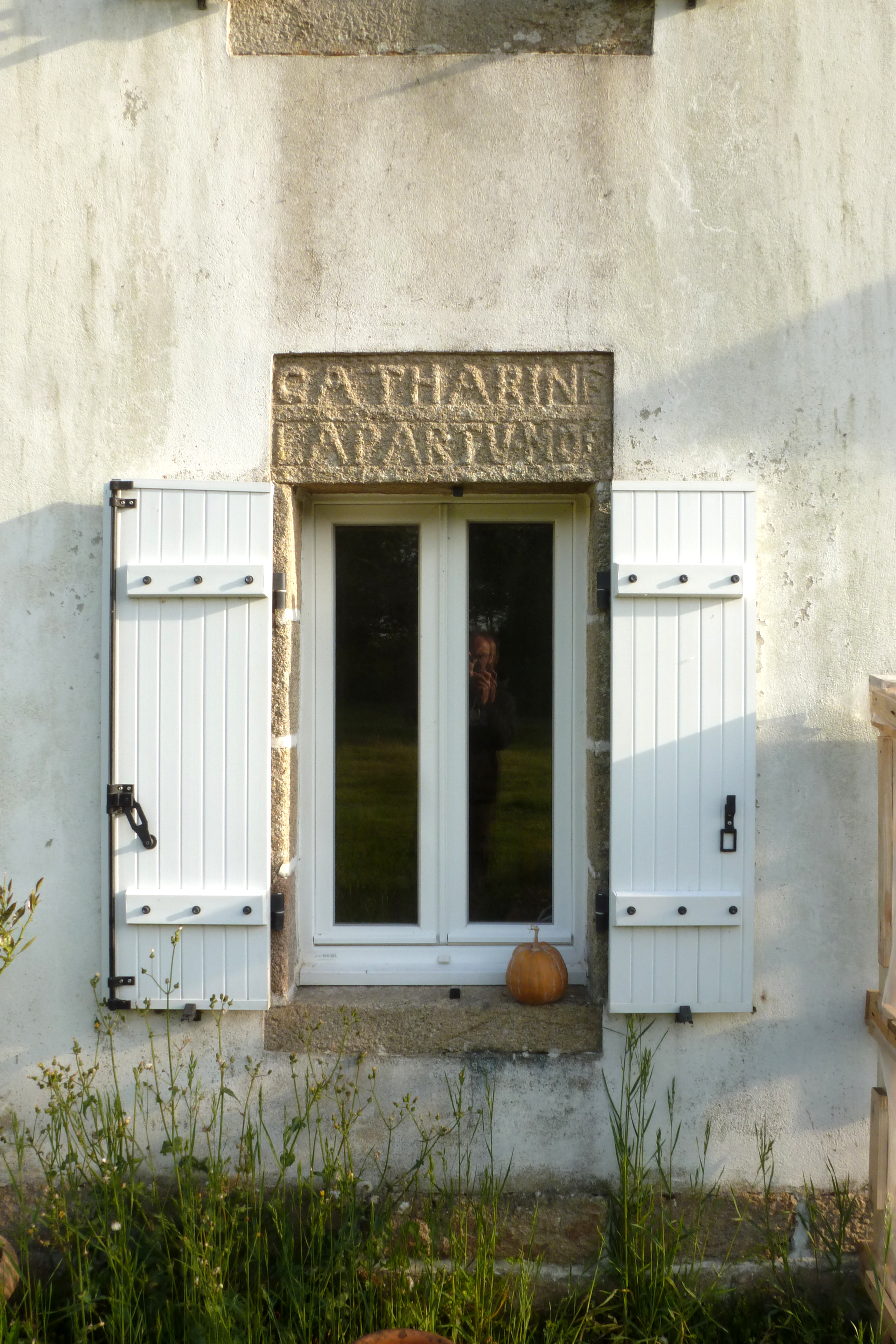 Logis daté 1838, détail de la fenêtre est et inscription : CATHARINE / LAPART.V.MOAL.Immatriculation