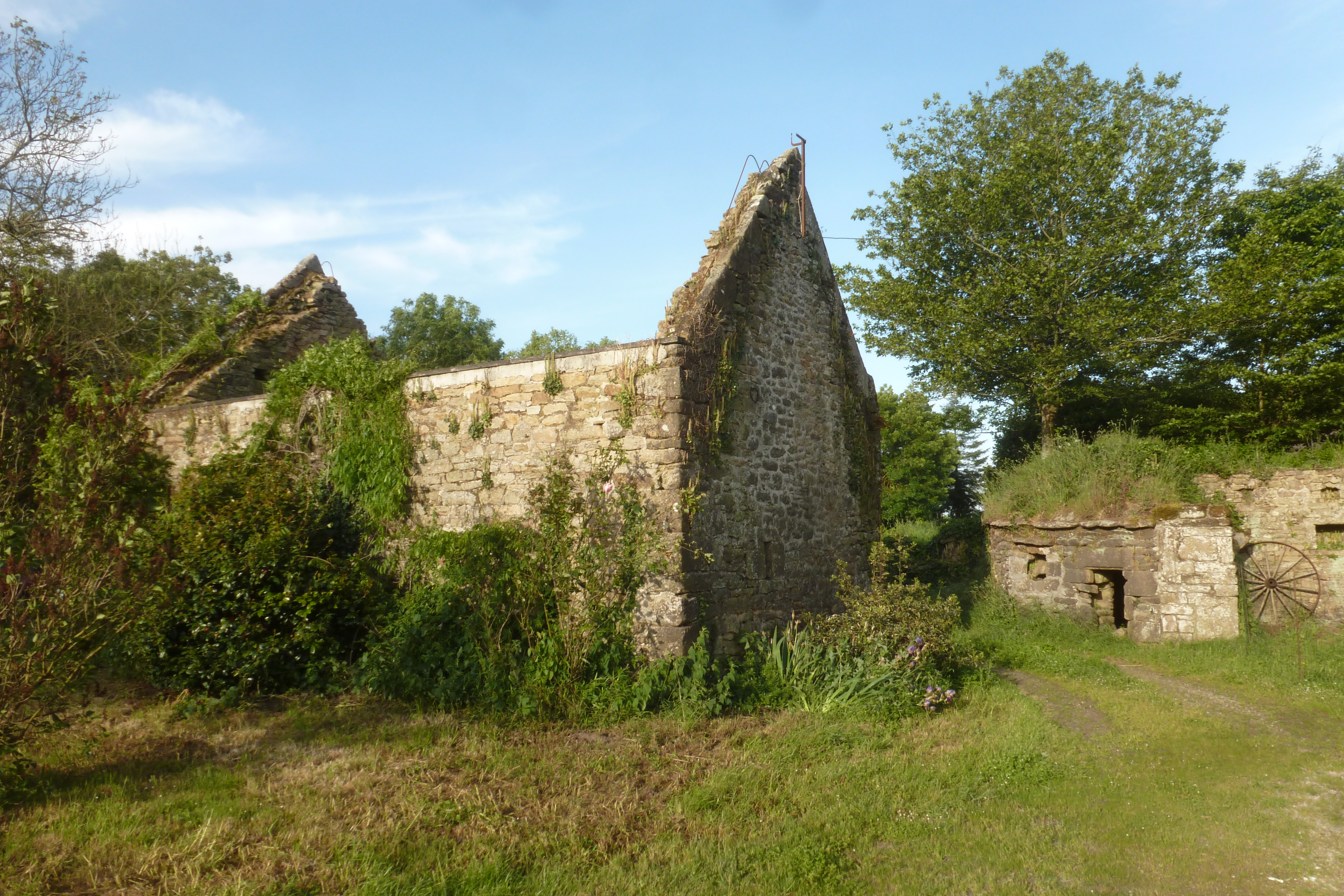 Sud-ouest de la cour, grange et crèche à cochon.Immatriculation