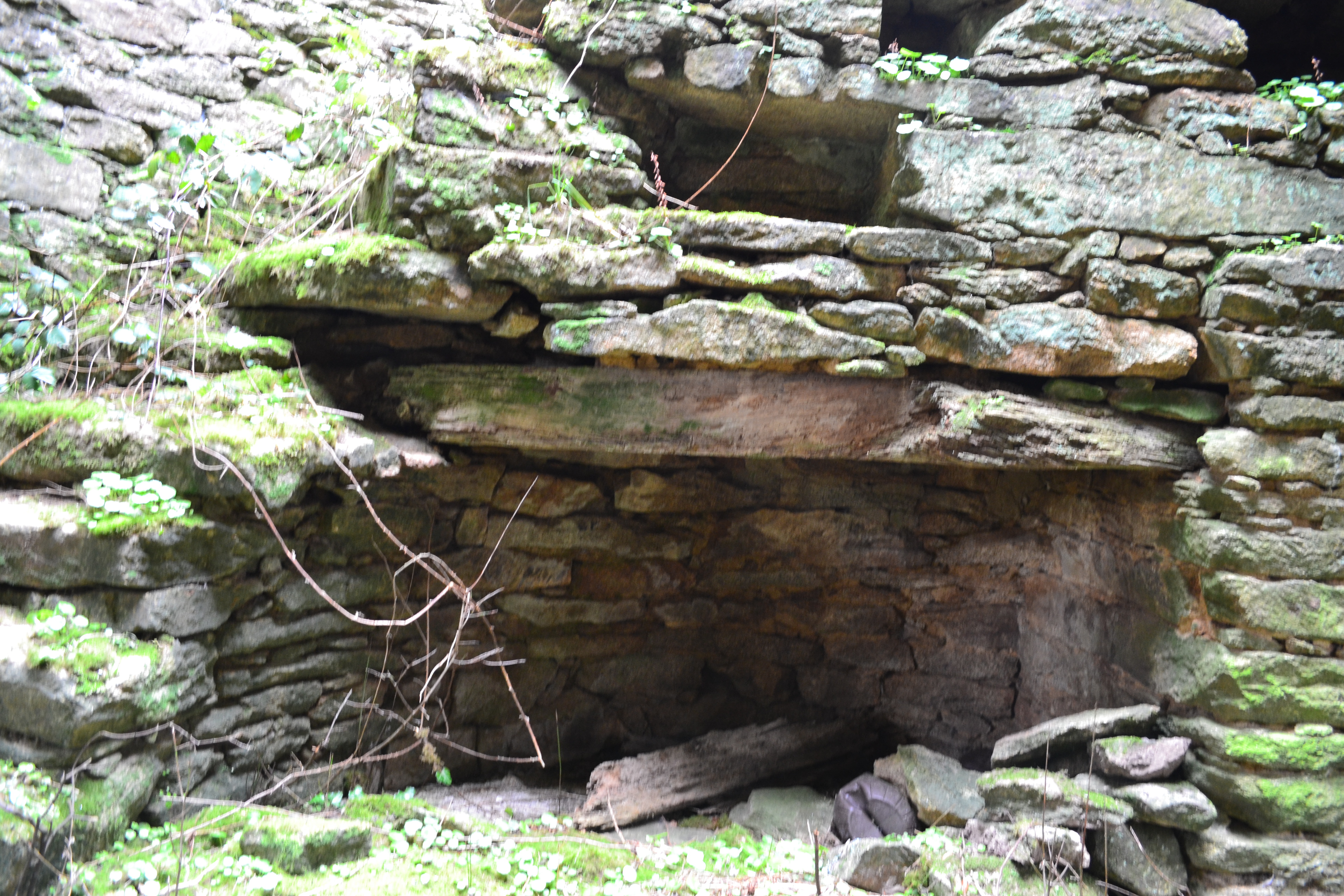 Niche sous l'escalier pour accueillir la couche du meunier. (Croix sur socle gravée sur une pierre au-dessus) (2020)Immatriculation