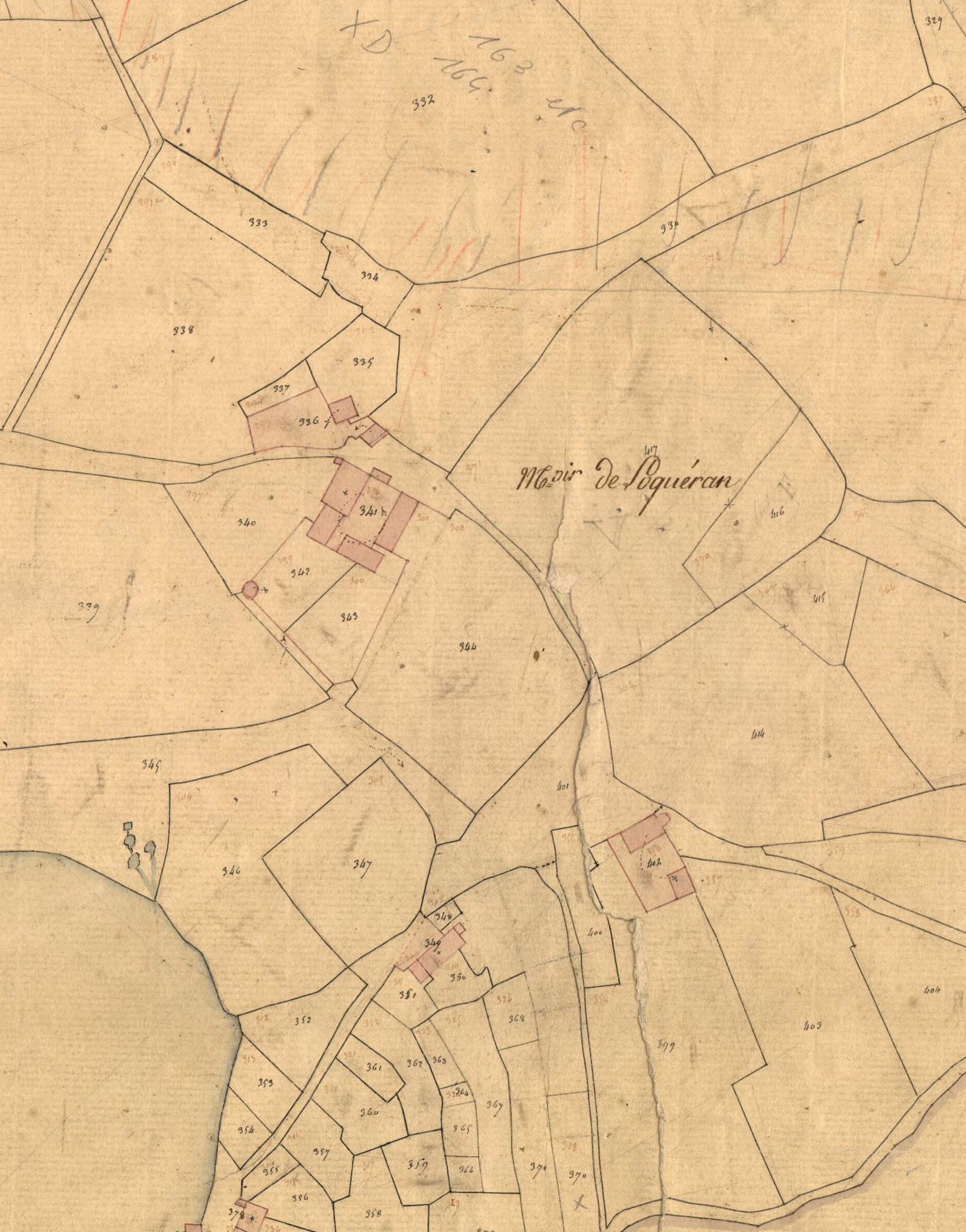 Manoir de Locquéran et ses dépendances, cadastre ancien de la commune de Plouhinec, 1836.Immatriculation