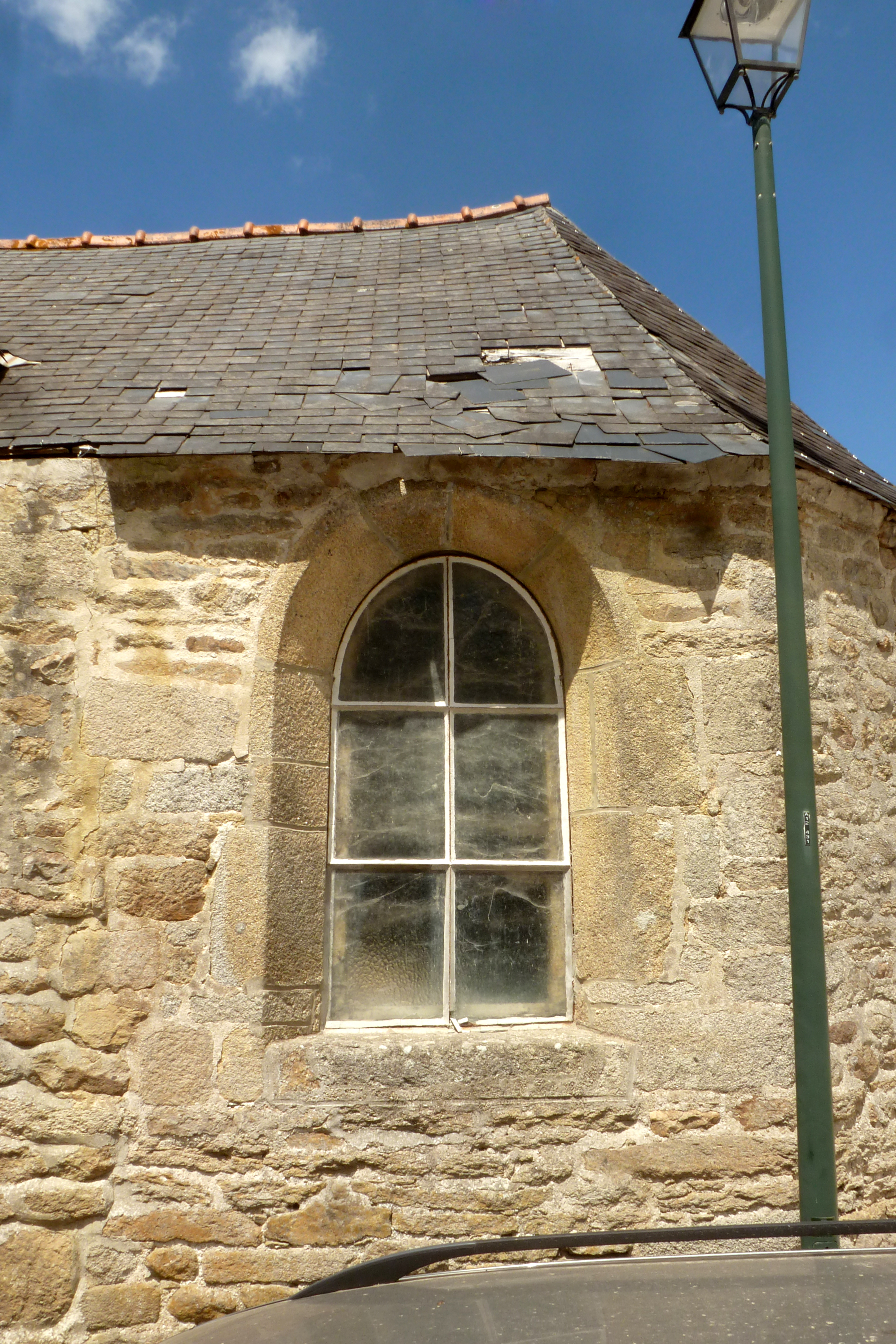 Détail de la fenêtre sud du chevet, vue prise de l'exterieur (2020)Immatriculation