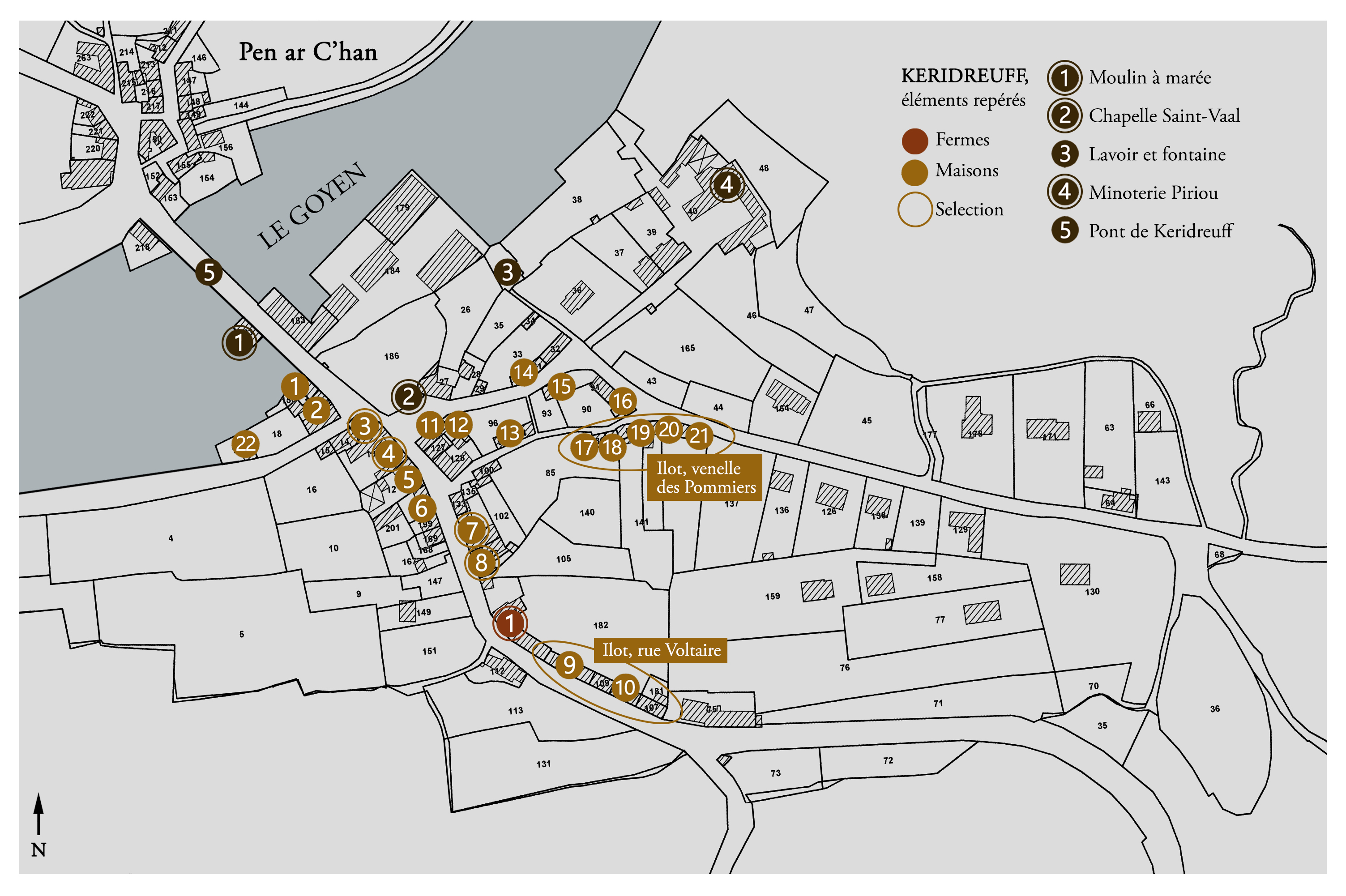 Village de Keridreuff, éléments repérés. Fond : cadastre 2019.Immatriculation