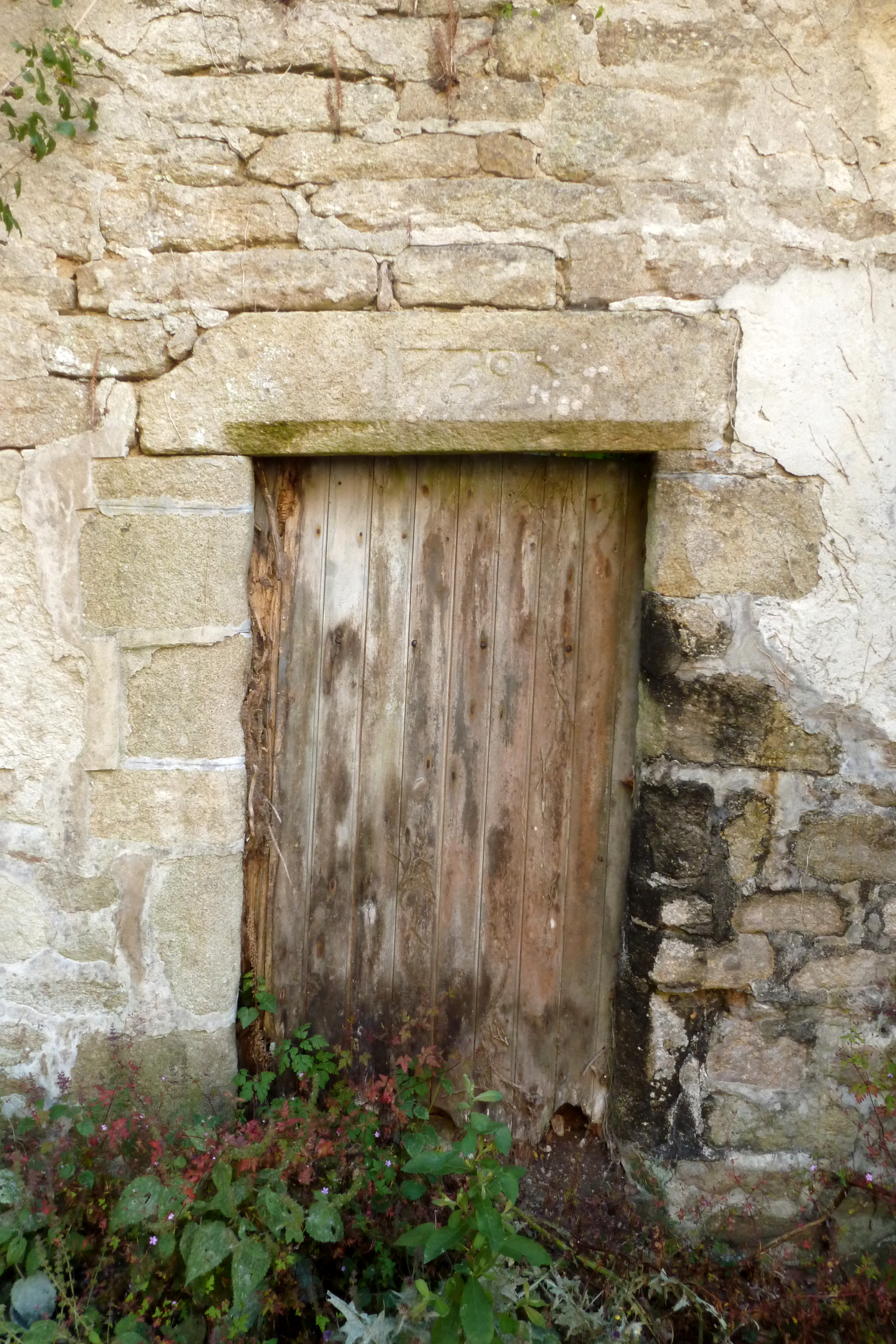 Moulin à pirouette sud. Détail de la porte d'entrée et date de 1759.Immatriculation