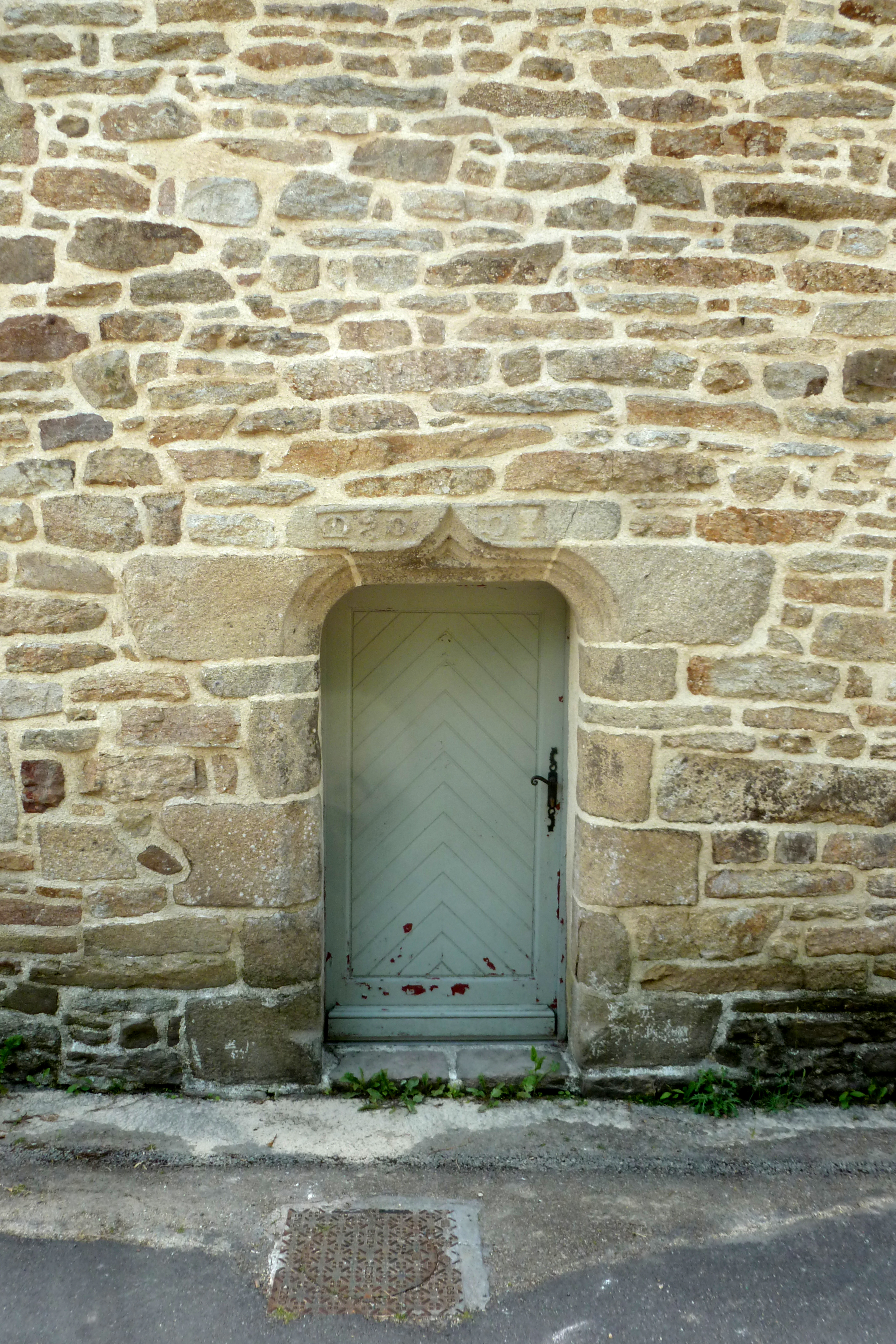 Maison 1, élévation nord du logis, détail de la porte d'entrée avec calice. (2020)Immatriculation