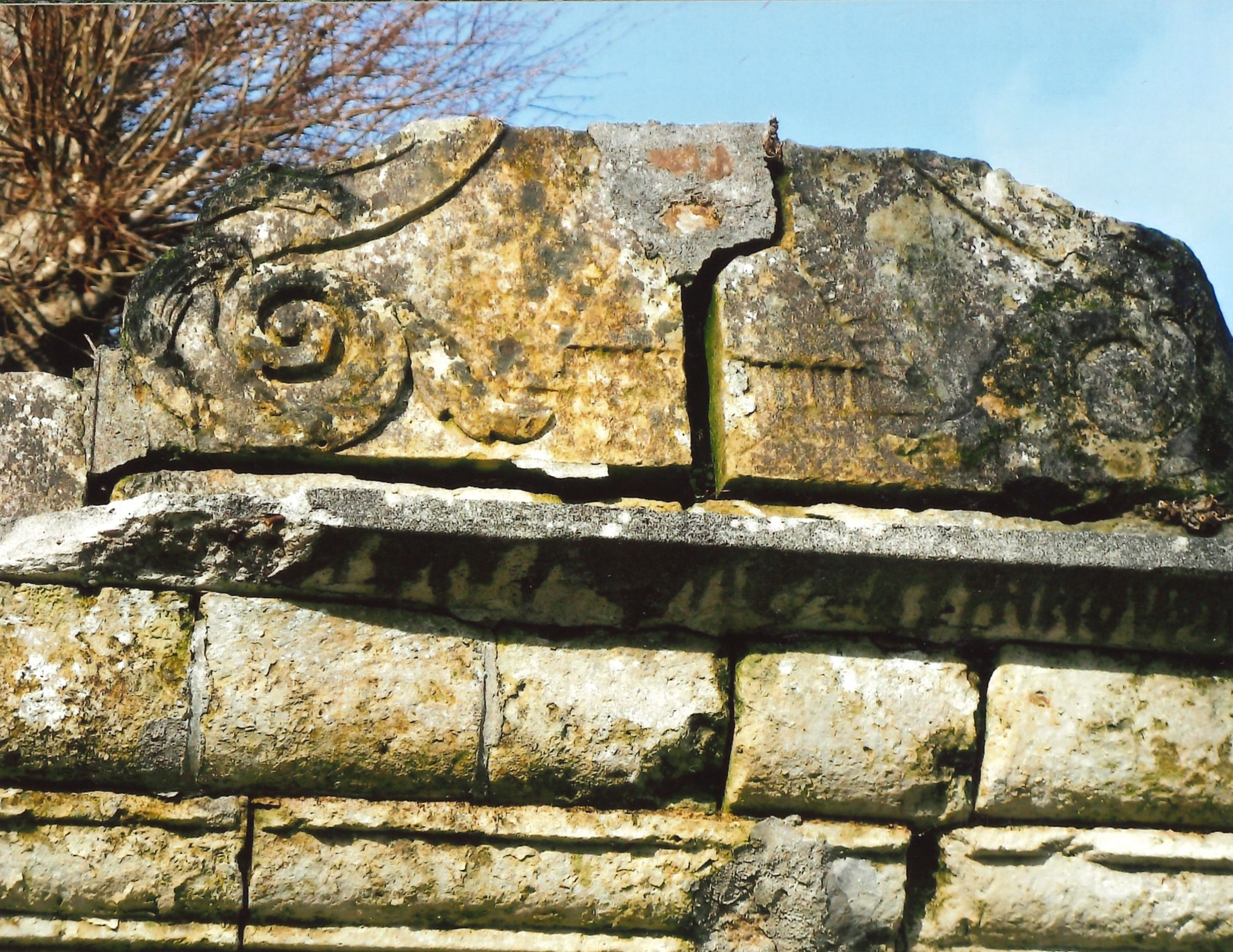 Détail des pierres (aujourd'hui disparues) du fronton. (2009)Immatriculation